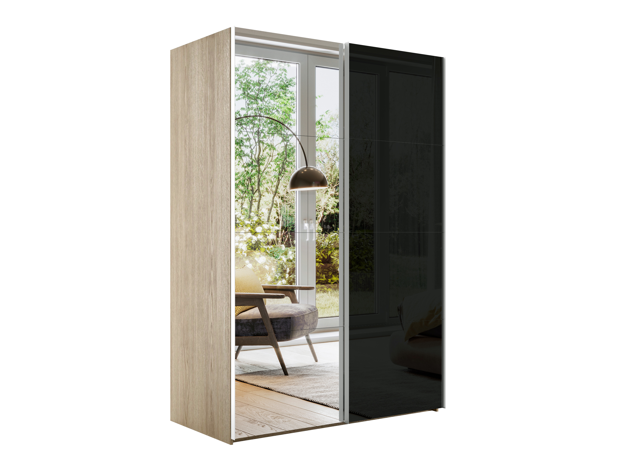 Шкаф Эста дуо Стекло черное/зеркало 2400 х 1600 х 660 (Дуб Бардолино)