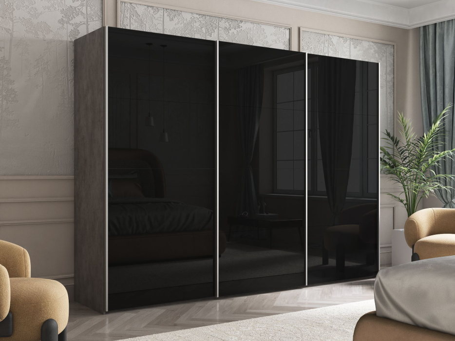Шкаф Эста трио Стекло черное 2400 х 2700 х 660 (Бетон серый)