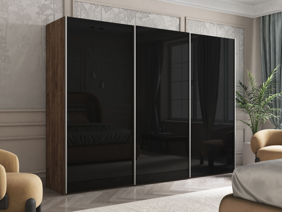 Шкаф Эста трио Стекло черное 2400 х 3000 х 660 (Дуб/крафт/табак)