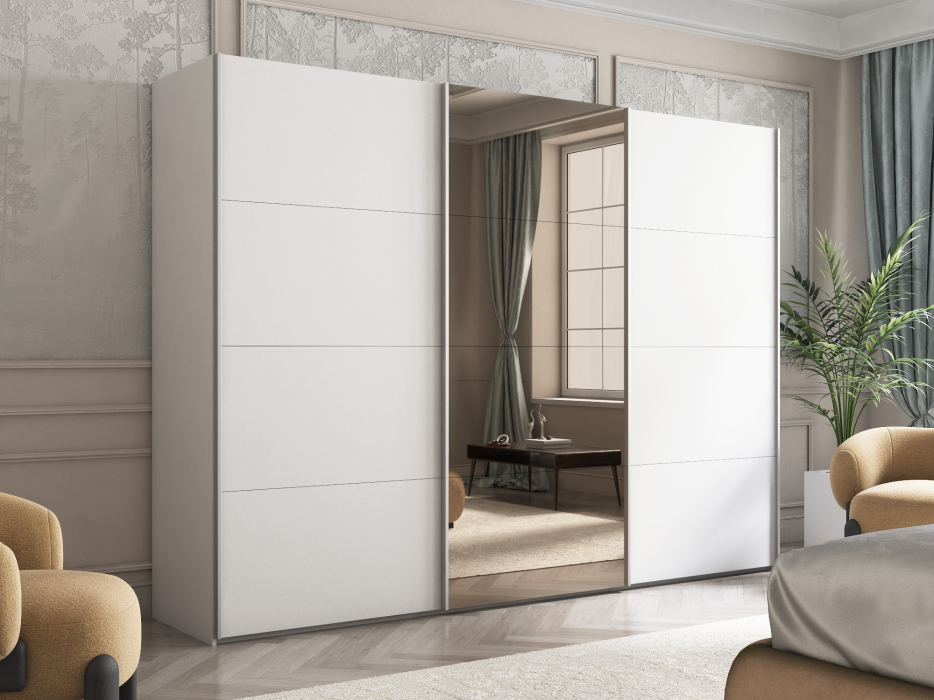 Шкаф-купе Эста ДСП+Зеркало+ДСП 300х66х240 (Белый)