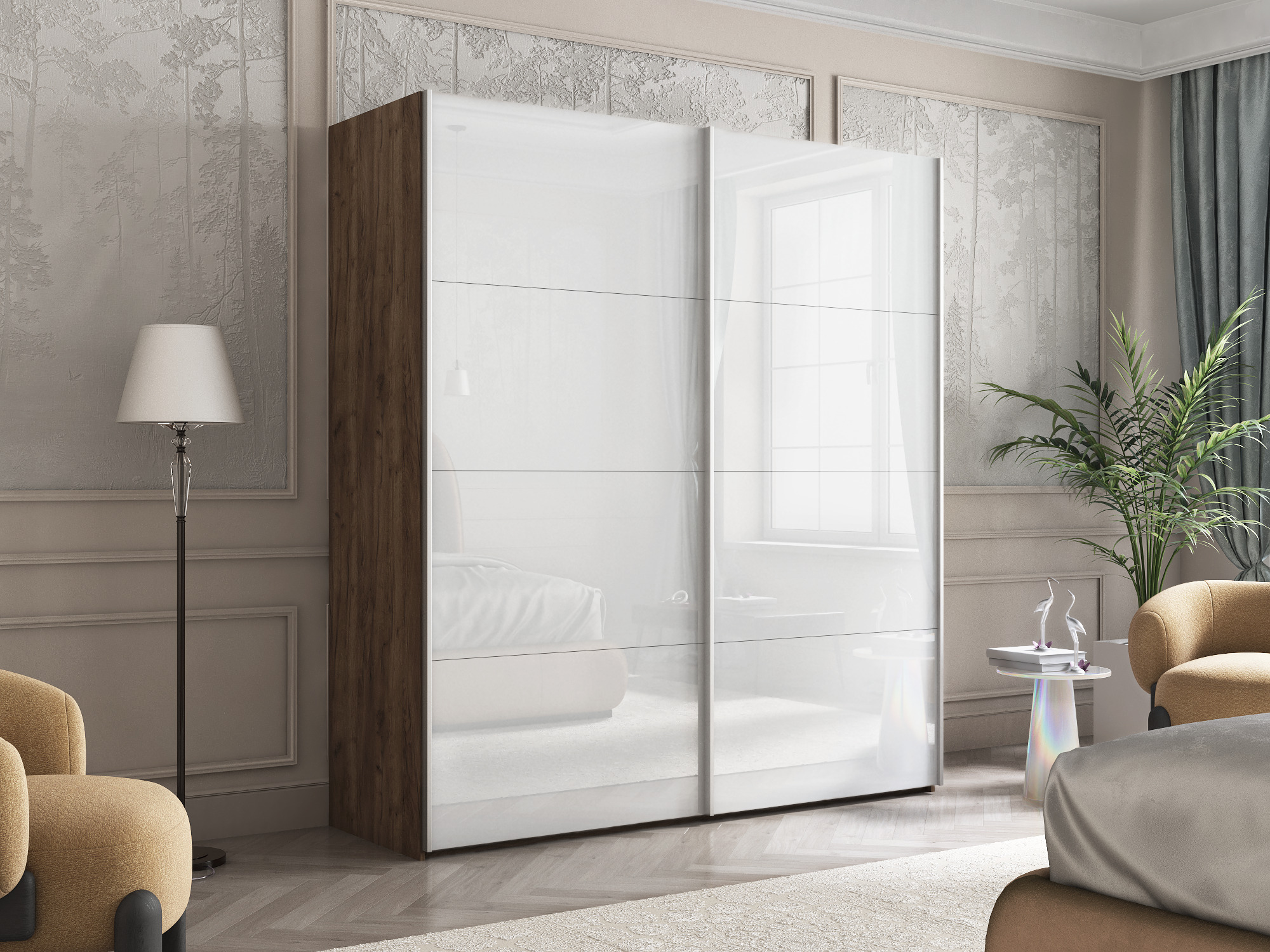 Шкаф-купе Эста Стекло белое+Стекло белое 200х66х240 (Дуб/крафт/табак)
