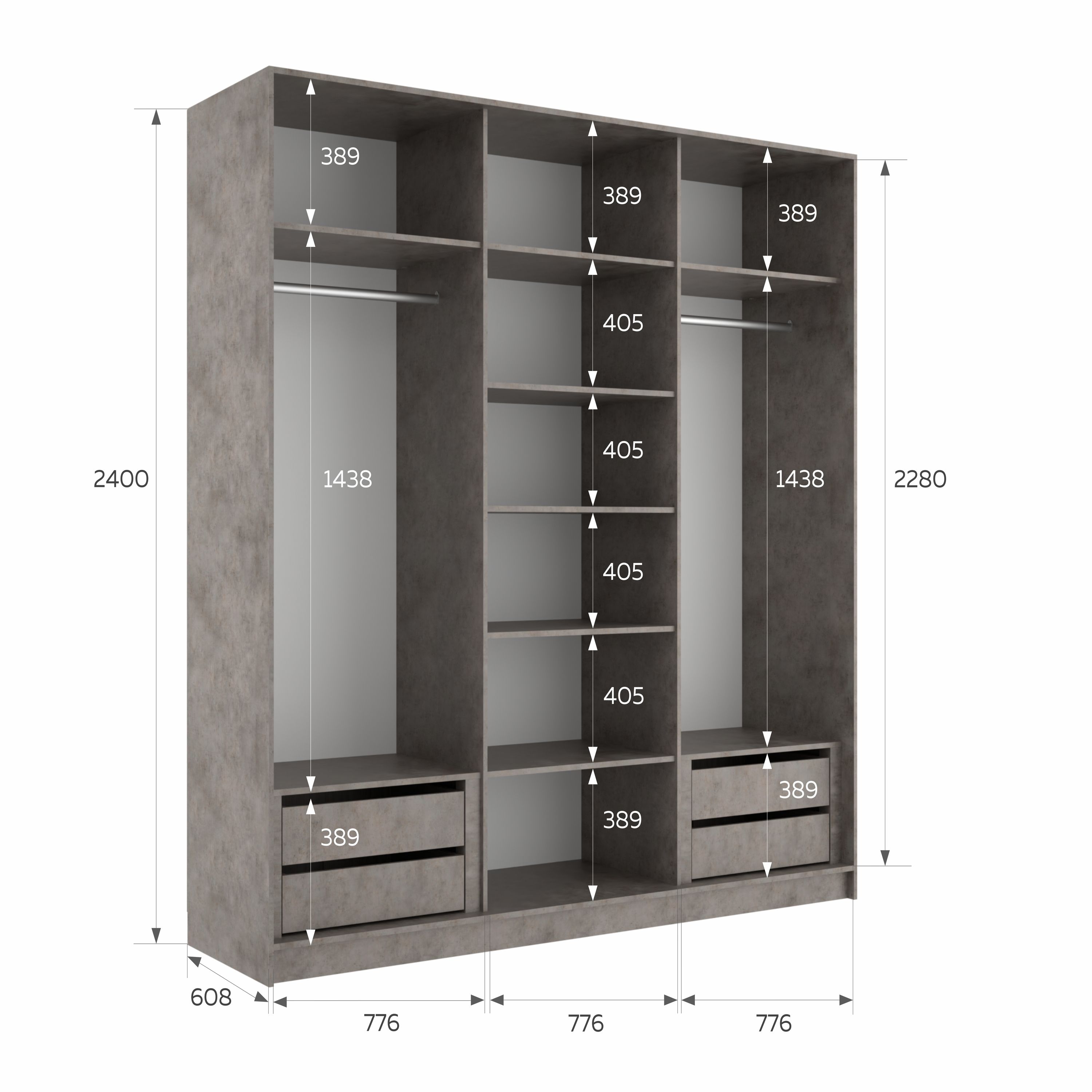 Шкаф-купе Эста Трио Стекло белое 240х66х240 (Бетон серый)