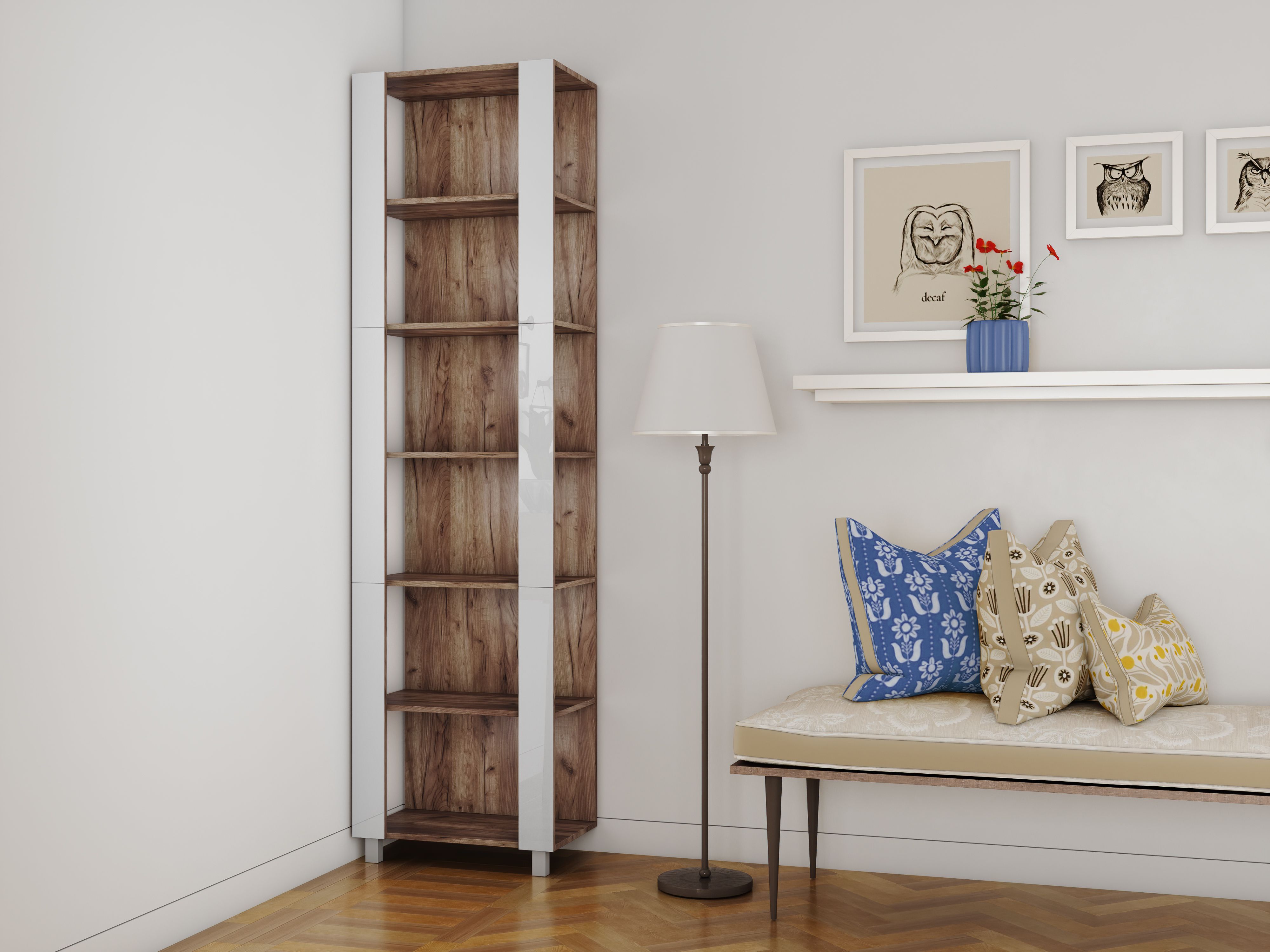 Стеллаж модульный Универсальный 35х51х230 Белое стекло (Дуб/крафт/табак)