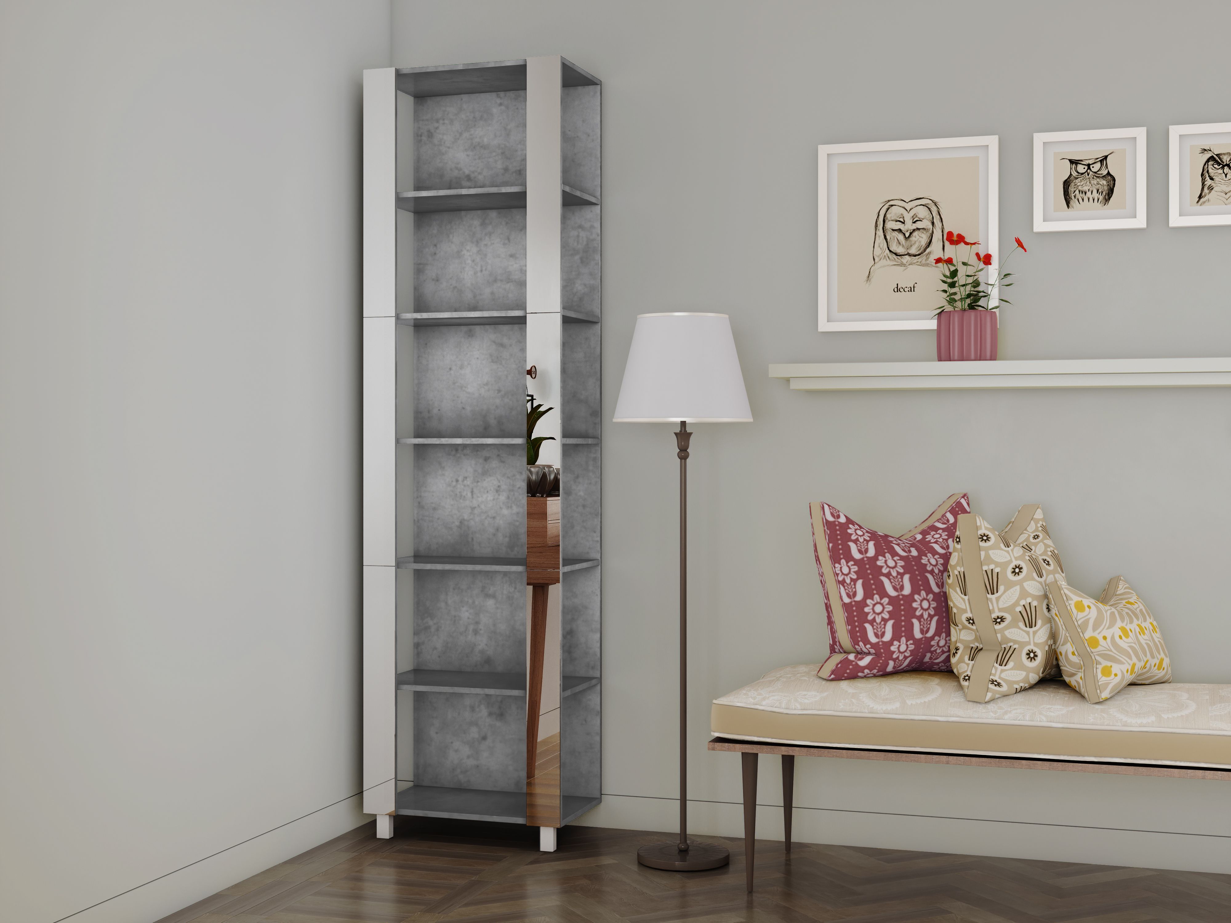 Стеллаж модульный Универсальный 35х51х230 Зеркало (Бетон)