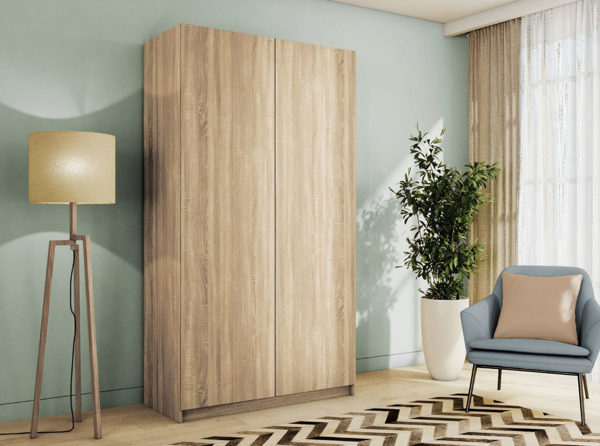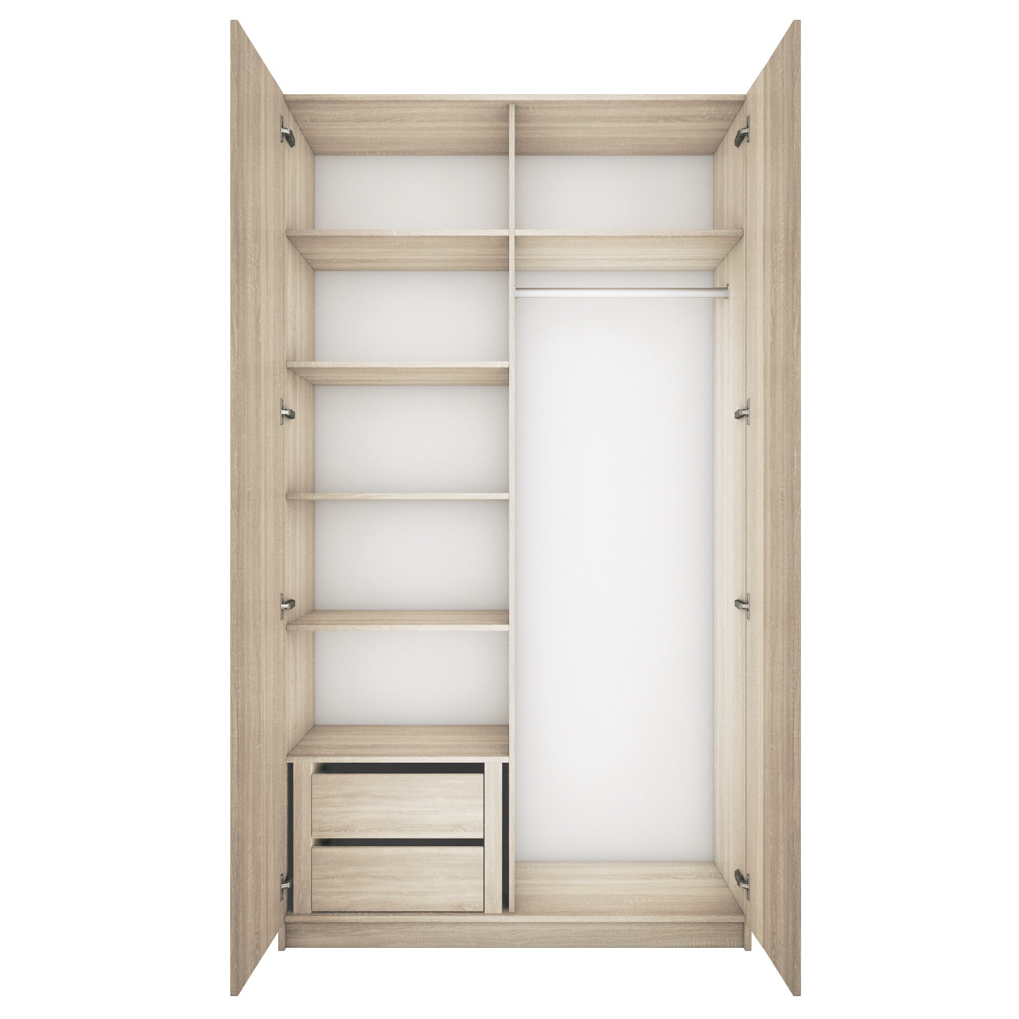Благодаря надежным полкодержателям - штифтам, полки шкафа могут выдерживать до 15 кг, штанга выдерживает нагрузку до 60 кг. Вы сможете убрать сезонные вещи, постельное белье на верхние полки. Распашной шкаф оснащен долговечной, ударостойкой кромкой ПВХ, которая защищает его торцы от сколов и повреждений, что обеспечит вам комфортное и долгое использование гардероба. Распашная система дверей Titus B-Type обеспечивает надежное прилегание дверцы к корпусу шкафа и высокую износостойкость. Механизм не деформируется при значительных нагрузках и максимально практичен в эксплуатации. Шкаф оснащен удобной минималистичной ручкой, изготовленной из алюминия. В производстве используется безопасное ЛДСП международного класса Е1, что способствует безопасному использованию на протяжении всего срока эксплуатации.