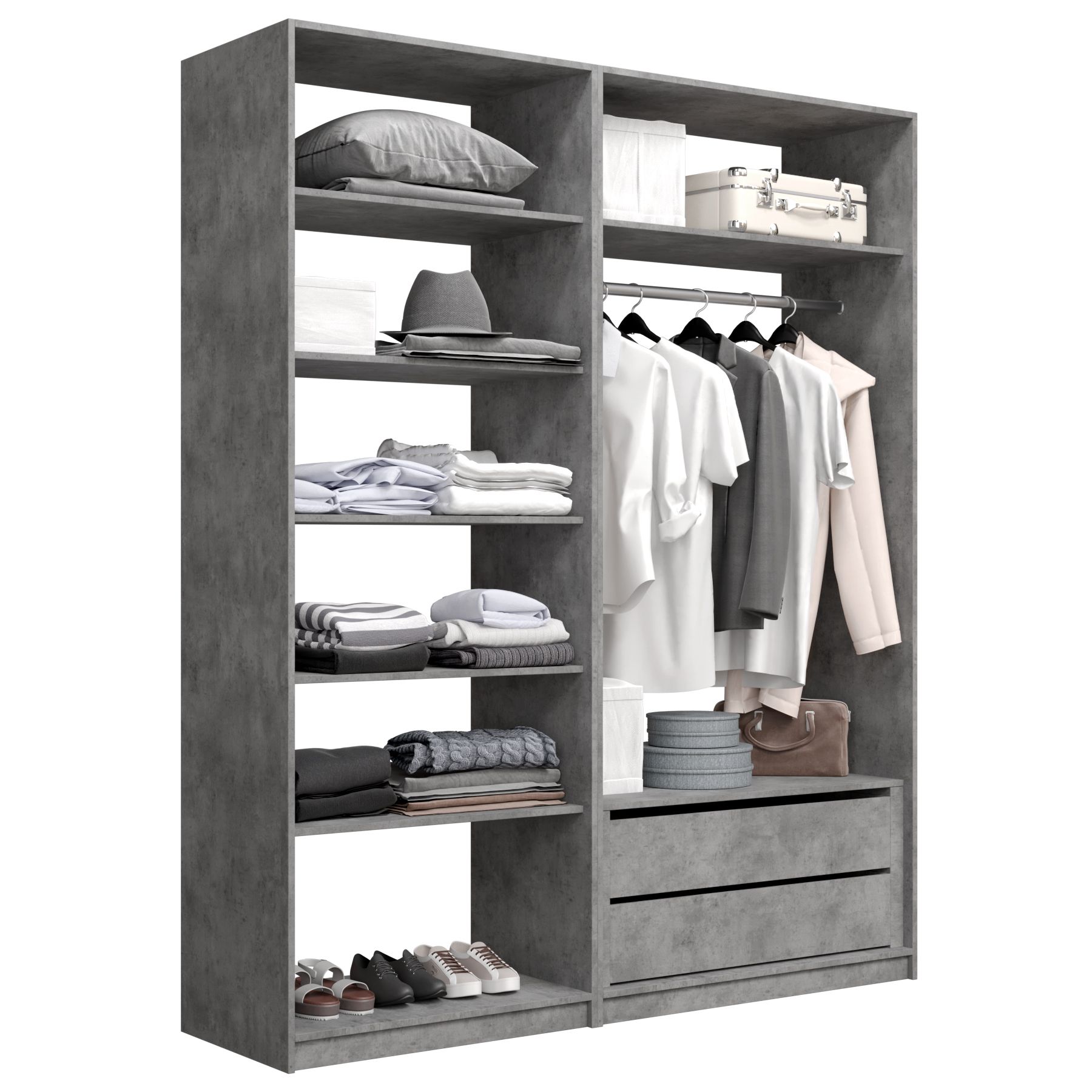 Отзывы о Столплит Прямая гардеробная система с полками и модулем MOD_COMPL Бетон