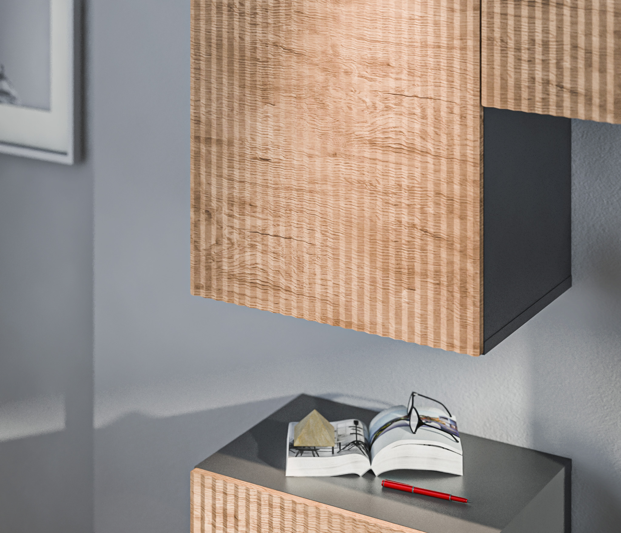 Гостиная (стенка) Тренд Диамант серый/МДФ Джаз Акация светлая (Акация светлая)