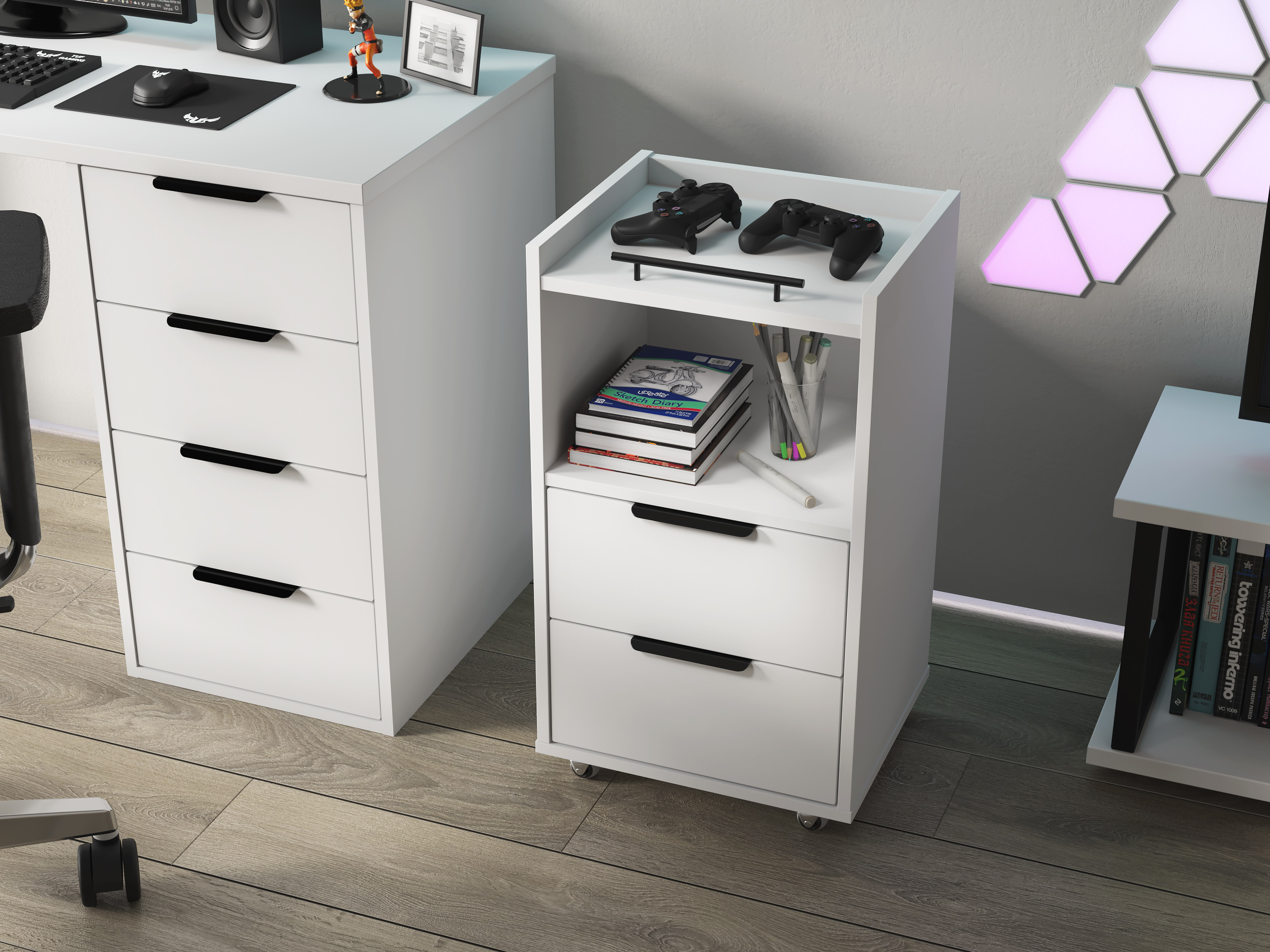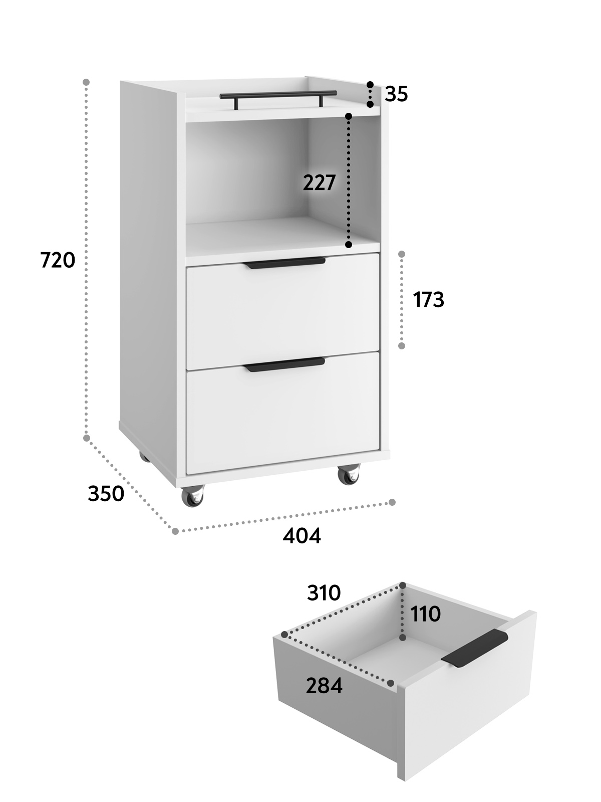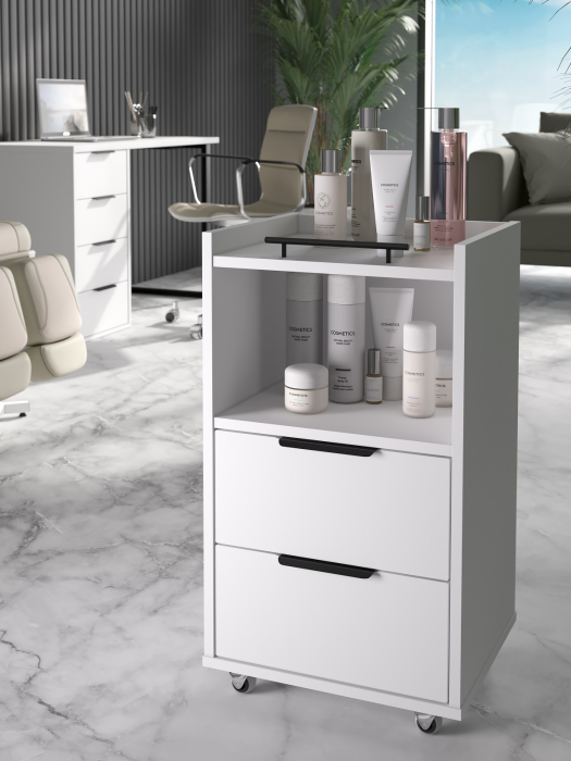Тумба К-30 подойдет для бизнеса, салонов красоты. Можно использовать как тележку-этажерку, тумбочку косметологическую, парикмахерскую, для массажиста, мастера по маникюру, педикюру, шугарингу, наращивания ресниц. Тумба оснащена полкой и 2-мя выдвижными ящиками для различных мелочей. Фурнитура: телескопические направляющие полного выдвижения без доводчиков Тумба обработана противоударной кромкой 2 мм Защитный бортик от падения вещей Металлические ручки Фасады ящиков МДФ Прорезиненные колесики с металлической крепежной платформой, с возможностью поворота на 360 градусов Важная информация. Мебель доставляется в разобранном виде, в упаковках.