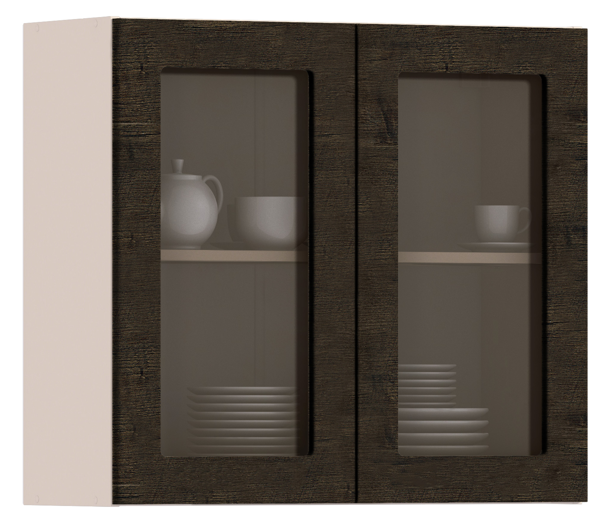 Регина шкаф навесной со стеклом 2 дв 80х72 см (Акация темная)