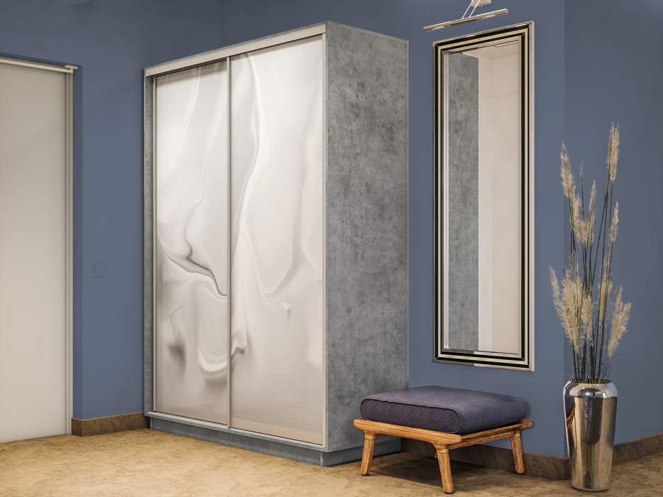 Отзывы о Столплит Шкаф-купе Экспресс 2-х дверный Фотопечать Шелк Стекла 120х45х240 Бетон