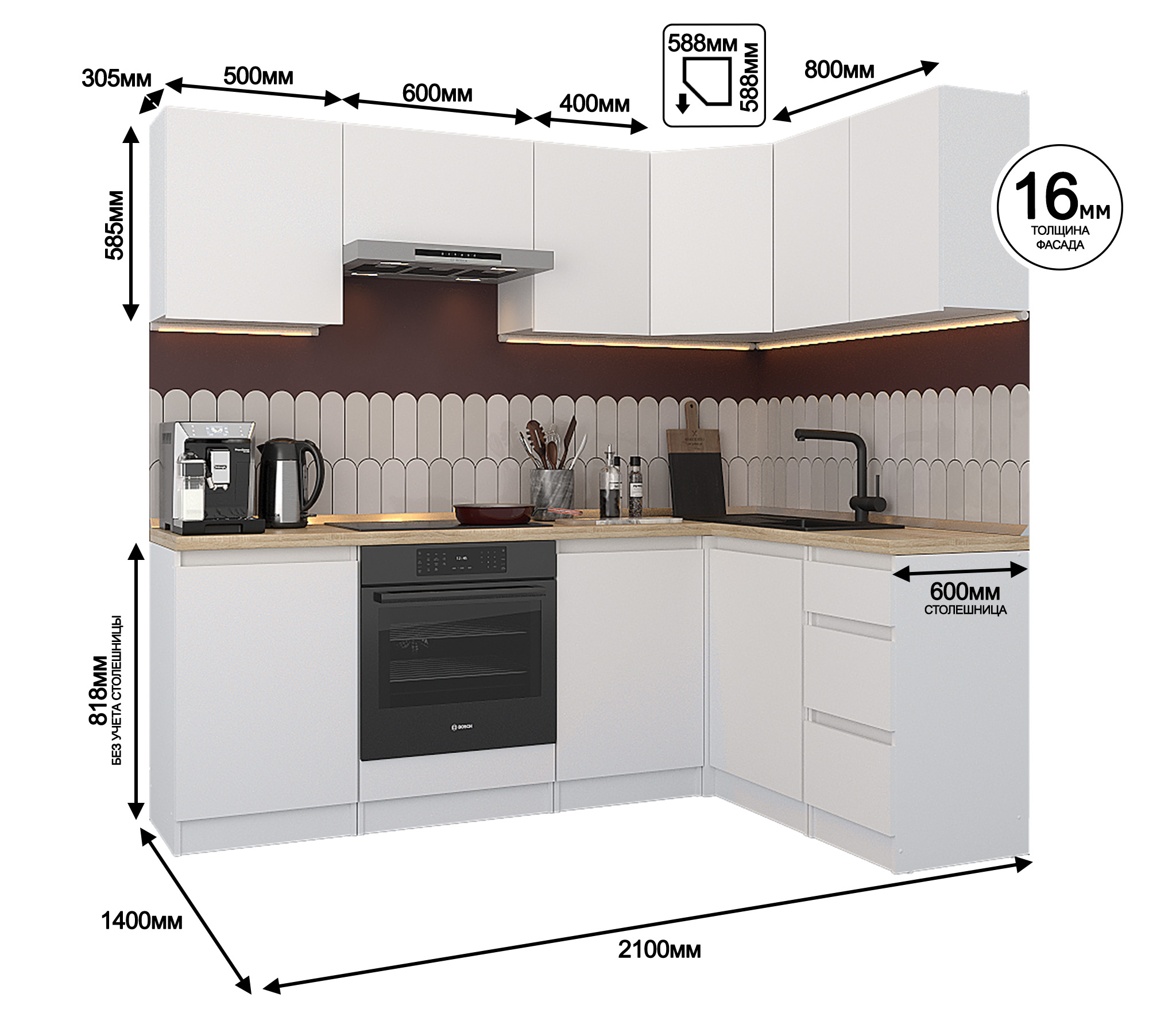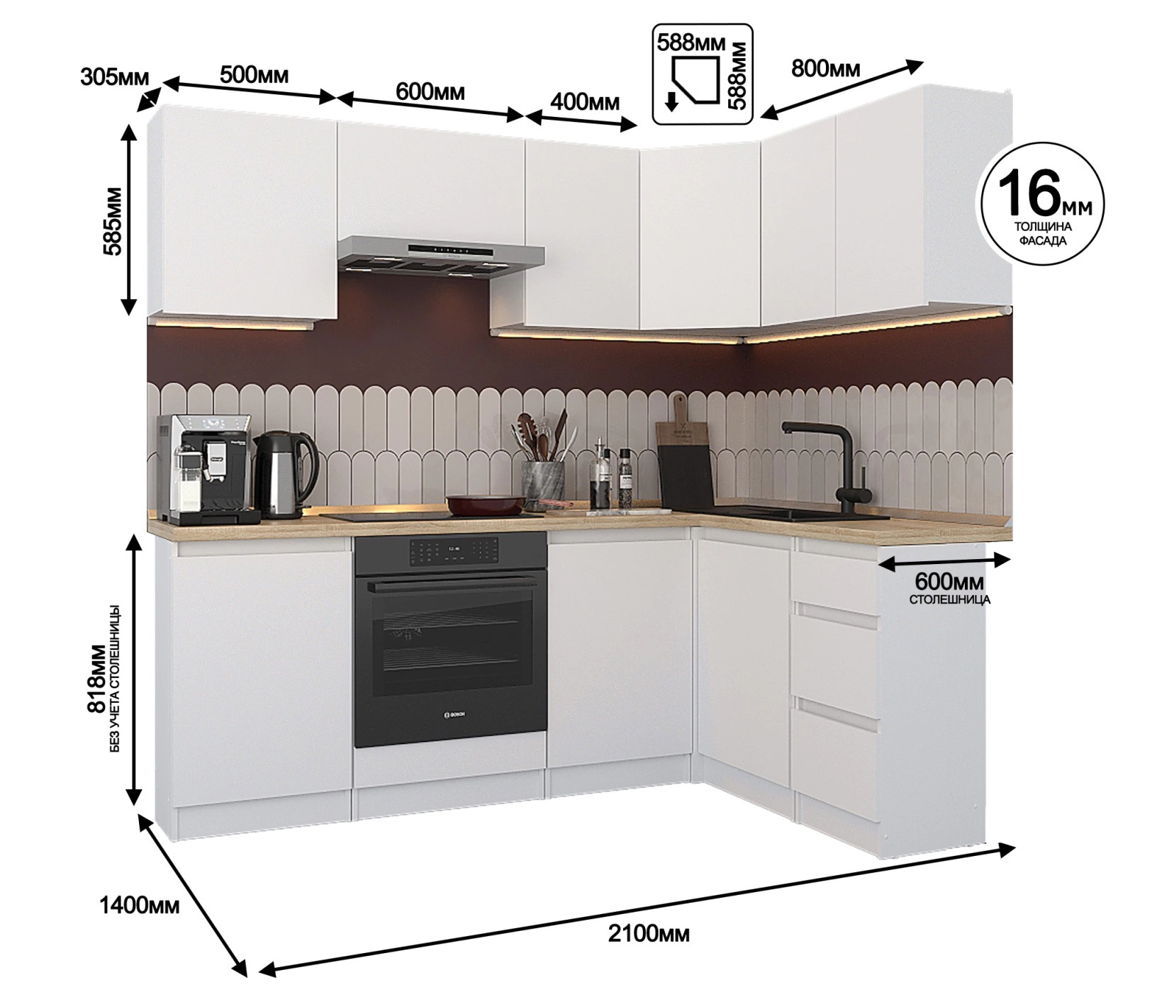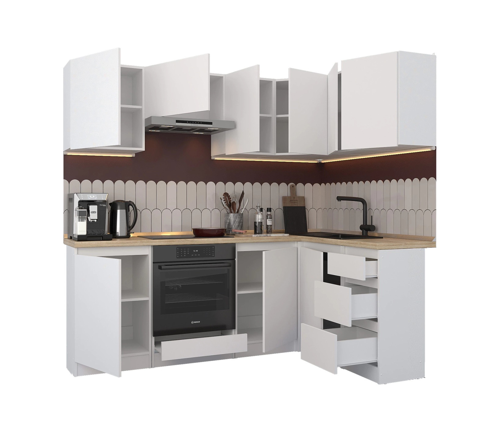 Кухонный гарнитур Леон угловой 210х140 см, белый Код 00000331077
