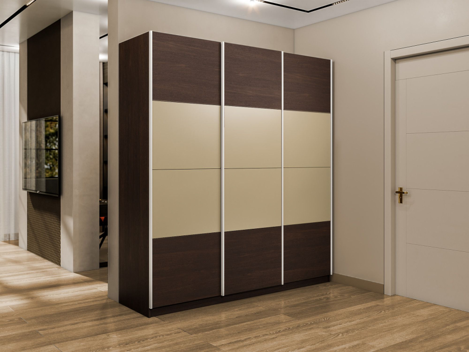 Шкаф-купе Эста 3-х дверный ДСП/Стекла фисташка/Доводчик 270х66х240 (Венге мали)