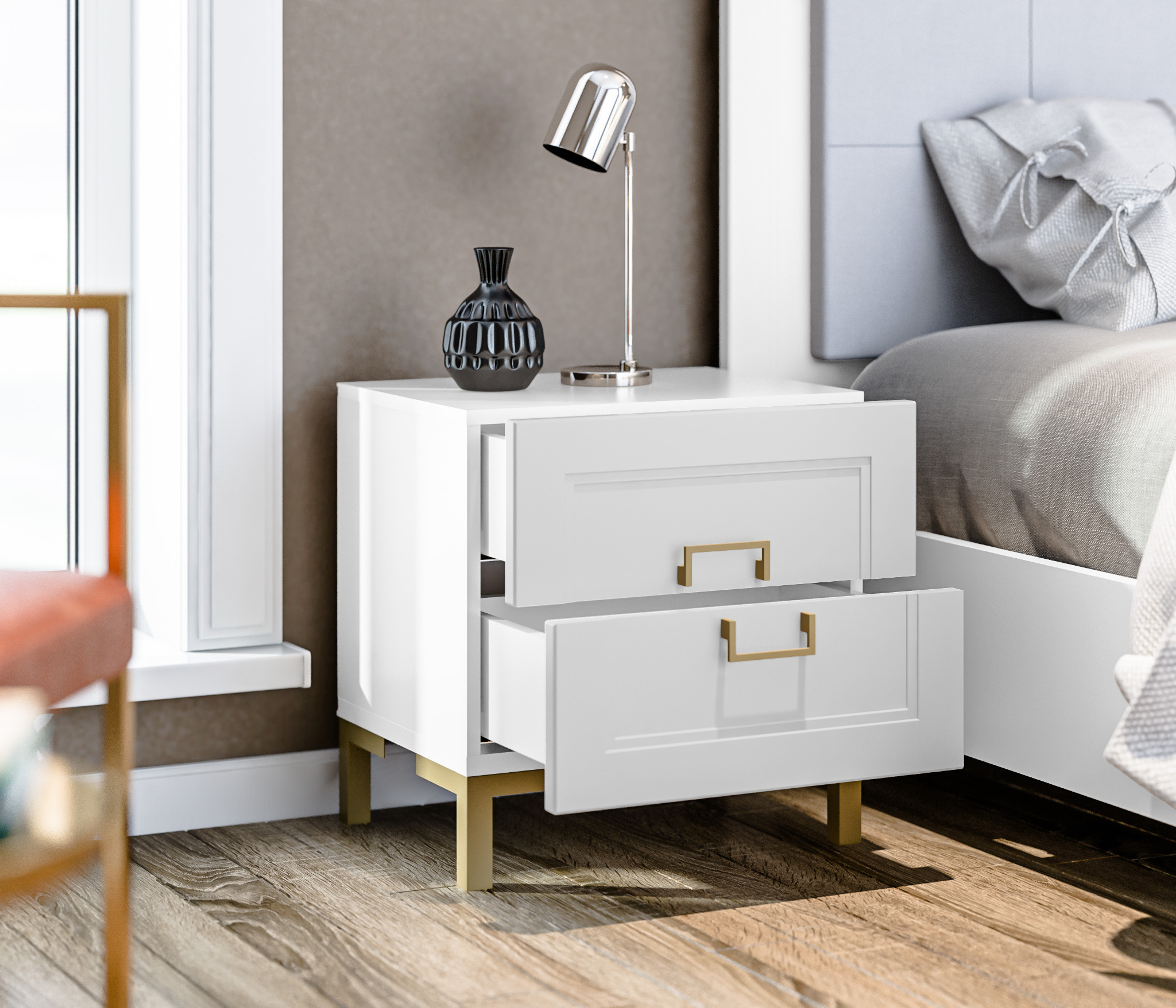 Золотистые ручки и ножки коллекции "Ассоль" добавляют неповторимый шик и изысканность, завершая образ тонким и стильным блеском. Эти акценты создают атмосферу роскоши и утонченности. Они играют роль визуального украшения, дополняя общий вид мебели и придавая ей особый шарм и элегантность.