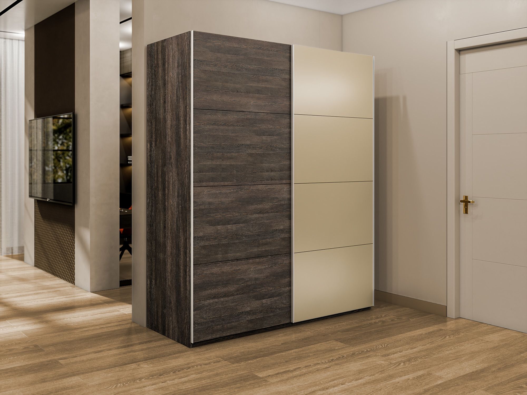 Шкаф-купе Эста 2-х дверный ДСП/Стекла фисташка/Доводчик 200х66х240 (Венге мали)