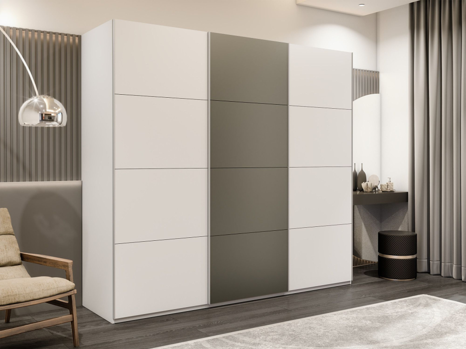 Шкаф-купе Эста 3-х дверный ДСП/Стекла хаки/Доводчик 300х66х240 (Белый)