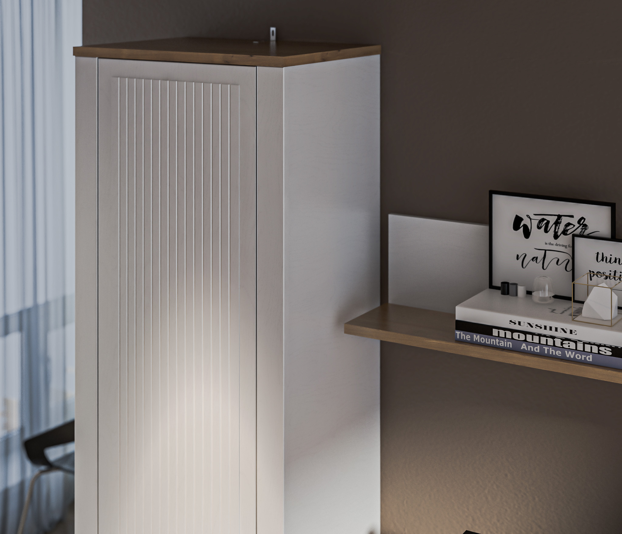 Модульная система Монтана создана для ценителей стиля. Белый цвет мебели зрительно расширяет границы комнаты и делает интерьер светлее, а текстура дерева создает атмосферу уюта и близости к природе. Комбинируя элементы нашей новой модульной коллекции, вы сможете создать для себя неповторимый и комфортный интерьер.