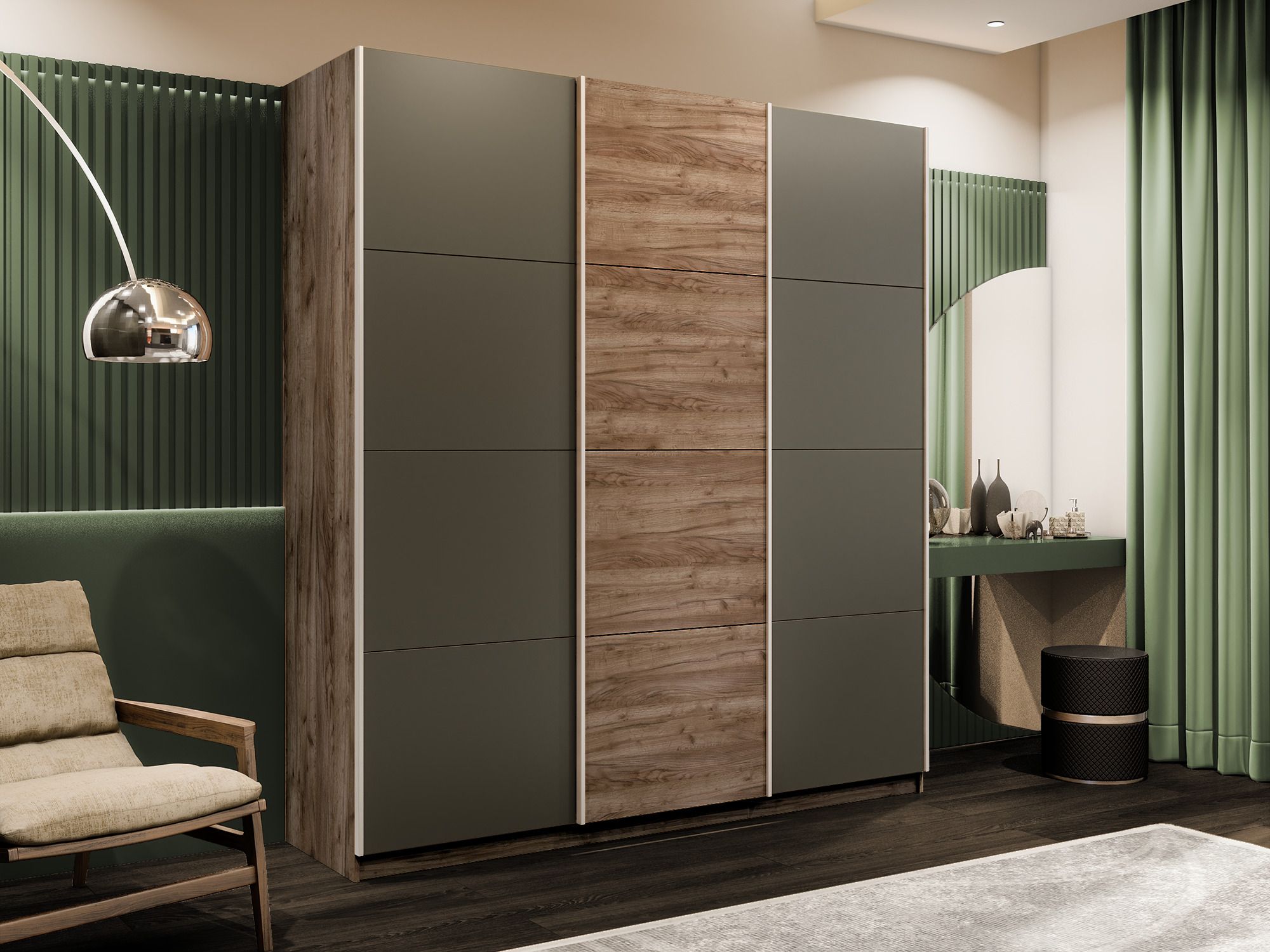 Отзывы о Столплит Шкаф-купе Эста 3-х дверный ДСП/Стекла хаки/Доводчик 270х66х240 Дуб/крафт/табак