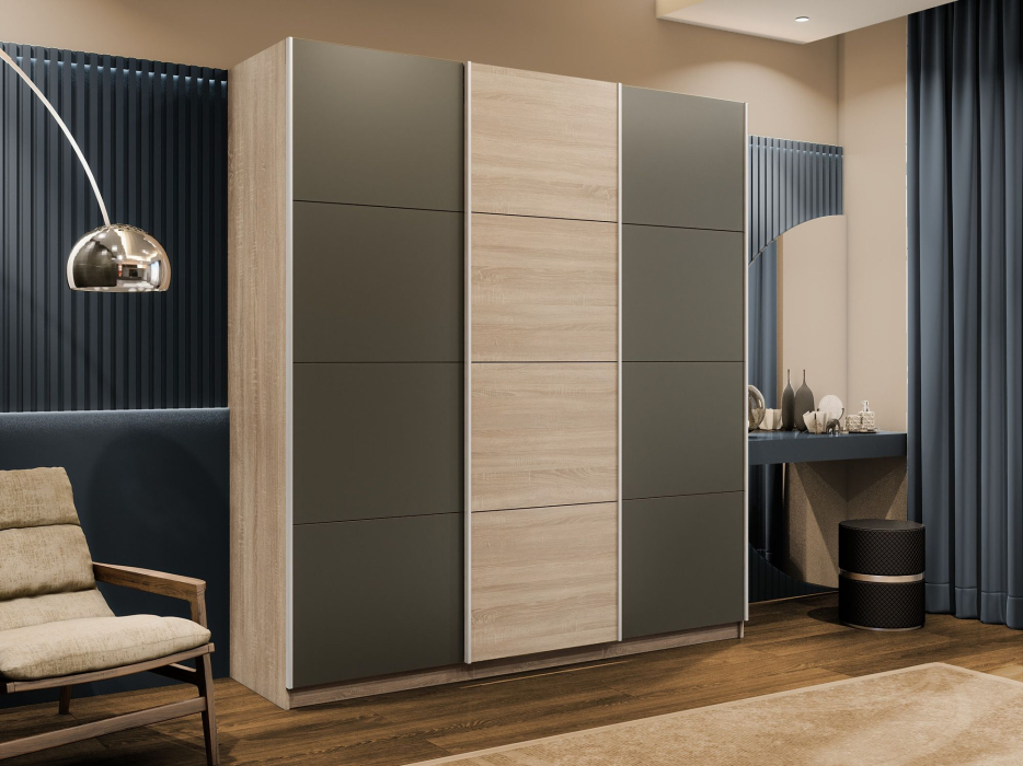 Отзывы о Столплит Шкаф-купе Эста 3-х дверный ДСП/Стекла хаки/Доводчик 300х66х240 Дуб Бардолино