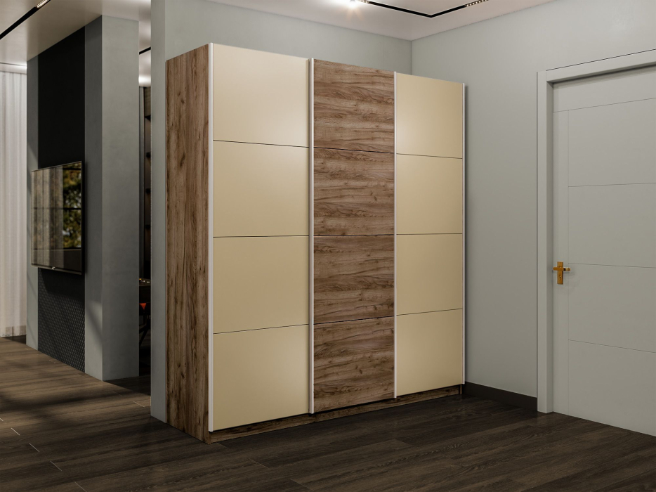 ВНИМАНИЕ! Минимальные размеры помещения для сборки и установки шкафа-купе серии "Прайм": +20 см по высоте, +5 см по ширине. Серия «Прайм» – это шкафы-купе для одежды с эстетичным и изысканным внешним видом, который достигается благодаря применению навесной системы крепления дверей-купе Hettich Top Line M со скрытым верхним ходовым профилем, данная система обеспечивает плавный ход фасадов. Каждая дверь поделена на 4 секции, которые можно устанавливать в произвольном порядке, создавая каждый раз новый дизайн фасада. Идеально подойдет не только к вашему спальному гарнитуру, прихожей и детской, но и будет гармонично сочетаться со всеми элементами мебели. Не займет много места, но позволит вместить большое количество вещей. Внутреннее наполнение шкафа позволяет вместить не только верхнюю одежду и обувь, но и аксессуары. А удобное разделение секций поможет грамотно разместить все вещи в шкафу. В шкафу-купе «Прайм» используется высококачественная фурнитура немецкого концерна Hettich, это обеспечит вам комфортное и долгое использование гардероба. В производстве используется безопасное ЛДСП международного класса Е1, что способствует безопасному использованию на протяжении всего срока эксплуатации. Поэтому вы можете использовать его в детской комнате, и ваш ребенок будет в безопасности. Доступна услуга сборки. Все подробности по тарифам и срокам уточнять у продавца. *Внутреннее наполнение стандартное, расположение полки/штанга менять местами не предусмотрено. Доводчики на закрывание входят в комплект. **Изображения товара могут отличаться по цвету и фактуре от фактического внешнего вида. Глубина шкафа по боковой стоевой с учетом дверей 570 мм, полезная глубина (глубина полок) 500 мм
