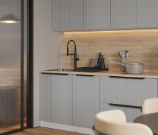 Элегантный и функциональный кухонный гарнитур коллекции Джаз цвет Светло-серый станет идеальным решением для любой современной кухни, сочетая в себе стиль и практичность.