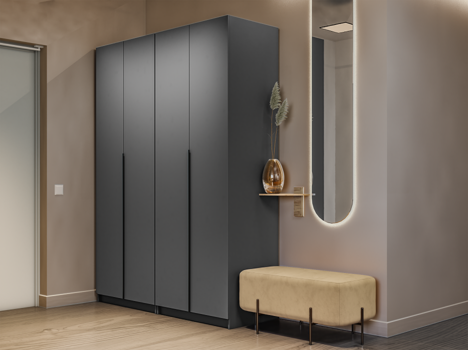 Система из двух шкафов для одежды Локер со складным механизмом открывания WingLine L— это комфортное хранение вещей и эргономичная организация пространства. Идеально подойдет не только к вашему спальному гарнитуру, прихожей и детской, но и будет гармонично сочетаться со всеми элементами мебели. Не займет много места, но позволит вместить большое количество вещей. Внутреннее наполнение шкафа позволяет вместить не только верхнюю одежду и обувь, но и аксессуары. А удобное разделение секций поможет грамотно разместить все вещи в шкафу. Благодаря надежным полкодержателям - штифтам, полки шкафа могут выдерживать до 15 кг. Вы сможете убрать сезонные вещи, постельное белье на верхние полки. Шкаф оснащен долговечной, ударостойкой кромкой ПВХ, которая защищает его торцы от сколов и повреждений, что обеспечит вам комфортное и долгое использование гардероба. Складная система дверей WingLine L экономит внешнее пространство за счет складывания дверей и обеспечивает их надежную фиксацию в открытом виде. Данный механизм обеспечивает плавный ход и исключает образование слепых зон. Система рассчитана на 40 000 циклов «открывание-закрывание». Шкаф оснащен удобной минималистичной ручкой, изготовленной из алюминия. В производстве используется безопасное ЛДСП международного класса Е1, что способствует безопасному использованию на протяжении всего срока эксплуатации. Поэтому вы можете использовать его в детской комнате, и ваш ребенок будет в безопасности. *Изображения товара могут отличаться по цвету и фактуре от фактического внешнего вида.