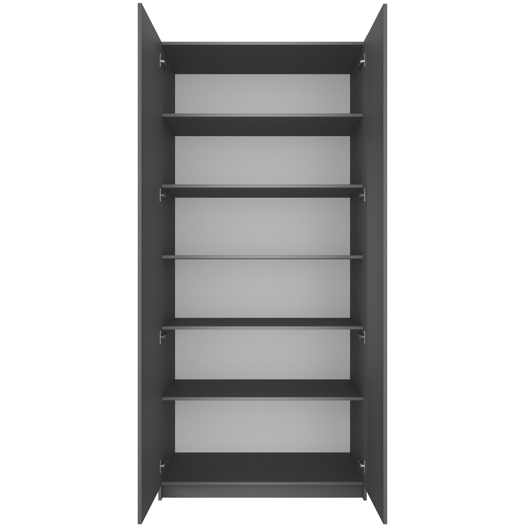 Благодаря надежным полкодержателям - штифтам, полки шкафа могут выдерживать до 15 кг, штанга выдерживает нагрузку до 60 кг. Вы сможете убрать сезонные вещи, постельное белье на верхние полки. Распашной шкаф оснащен долговечной, ударостойкой кромкой ПВХ, которая защищает его торцы от сколов и повреждений, что обеспечит вам комфортное и долгое использование гардероба. Распашная система дверей Titus B-Type обеспечивает надежное прилегание дверцы к корпусу шкафа и высокую износостойкость. Механизм не деформируется при значительных нагрузках и максимально практичен в эксплуатации. Шкаф оснащен удобной минималистичной ручкой, изготовленной из алюминия.