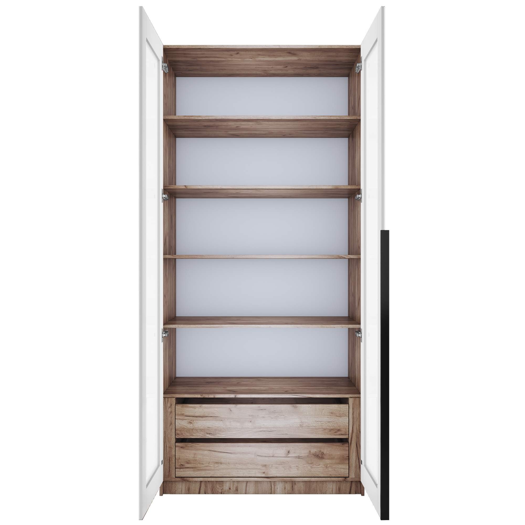 Шкаф распашной Е1 Локер 101x52.5x220 см, с белым стеклом , полками и модулем (Дуб/крафт/табак)