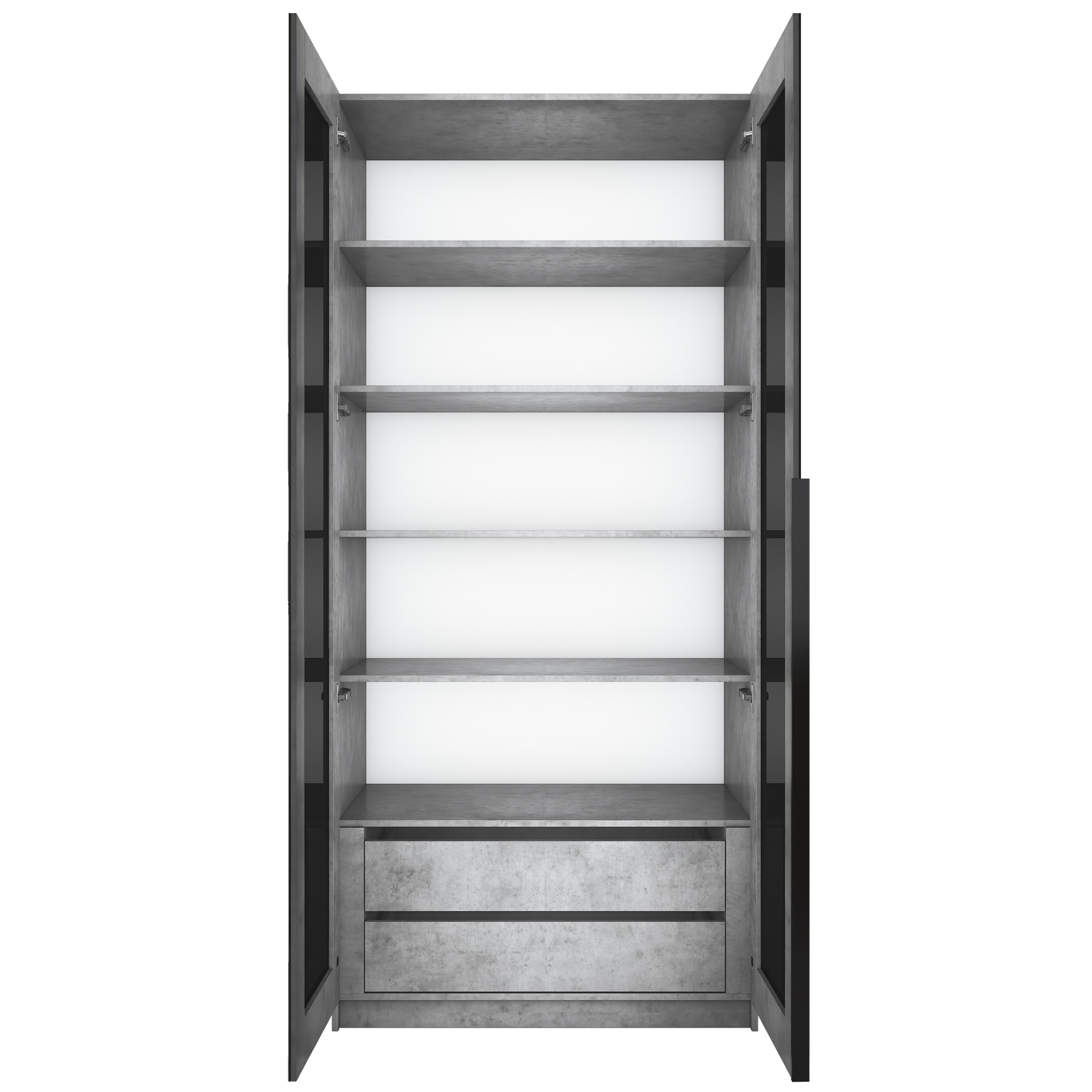 Шкаф распашной Е1 Локер 101x52.5x220 см, с черным стеклом , полками и модулем (бетон)