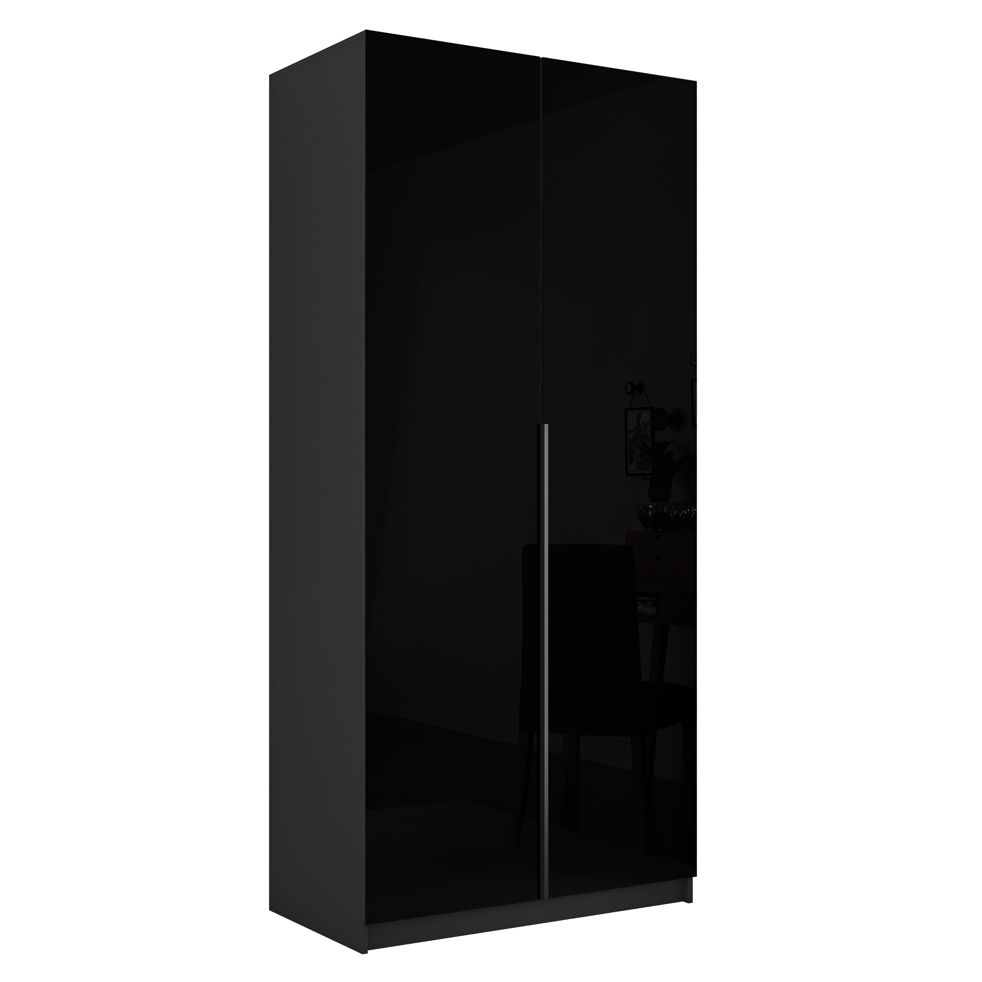 Шкаф распашной Е1 Локер 101x52.5x220 см, с черным стеклом , полками и модулем (Серый диамант)