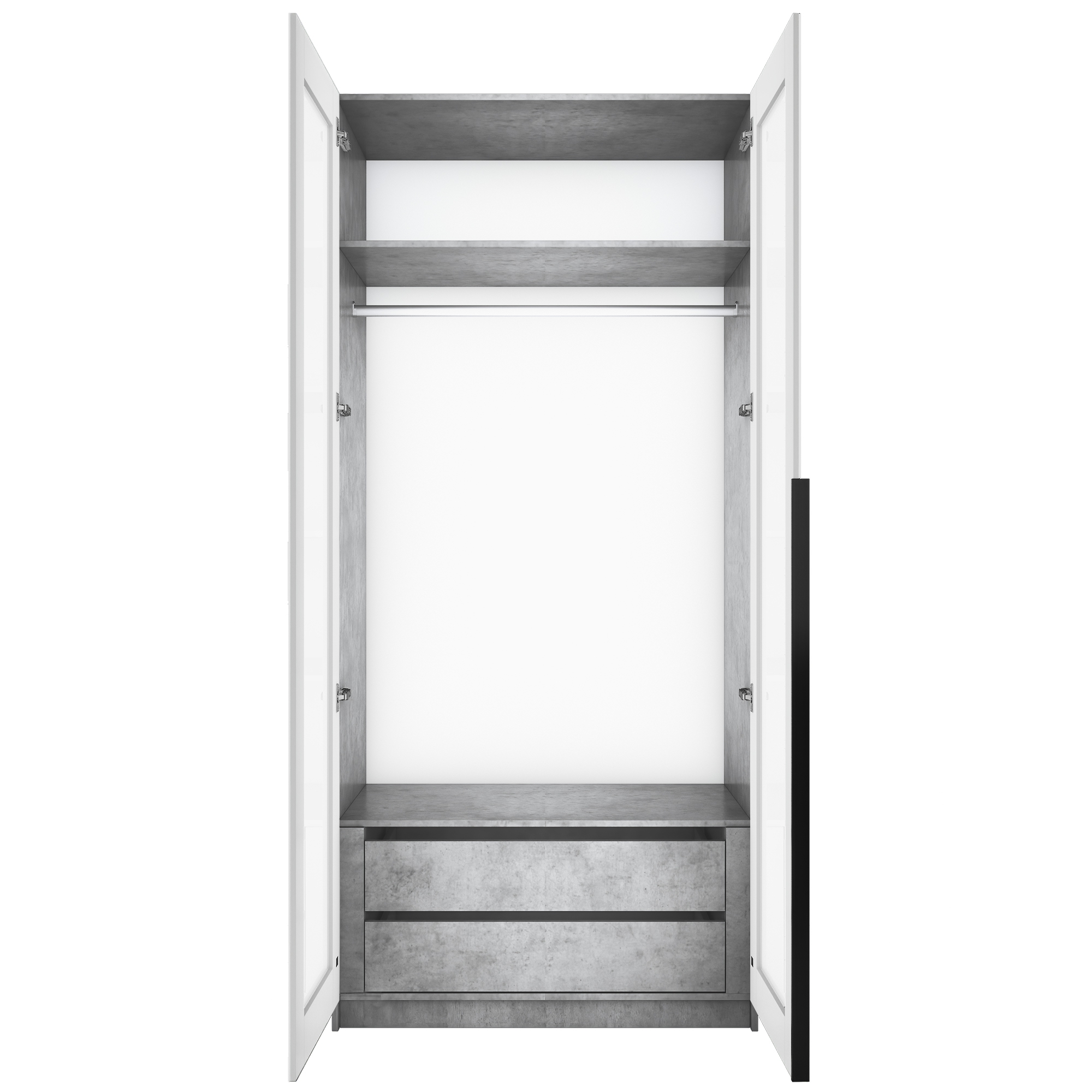 Шкаф распашной Е1 Локер 101x52.5x220 см, с белым стеклом и модулем (бетон) Код I0000426796