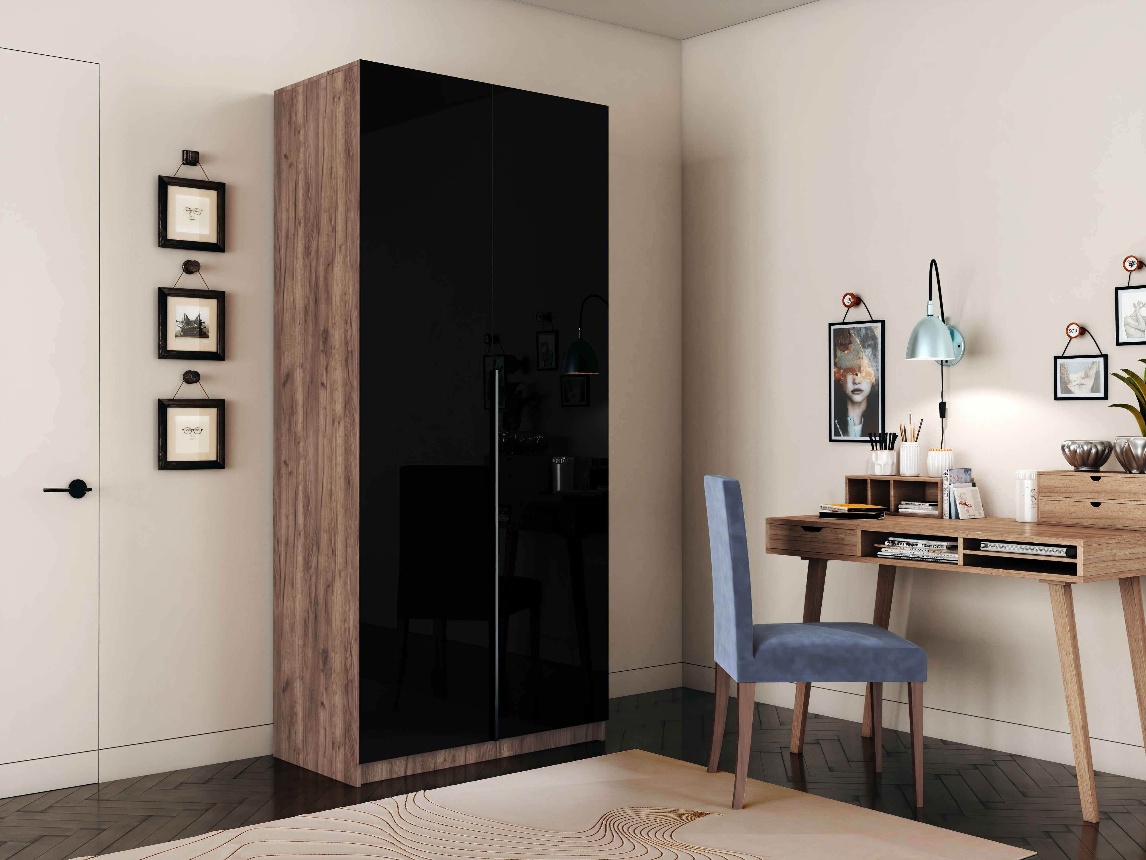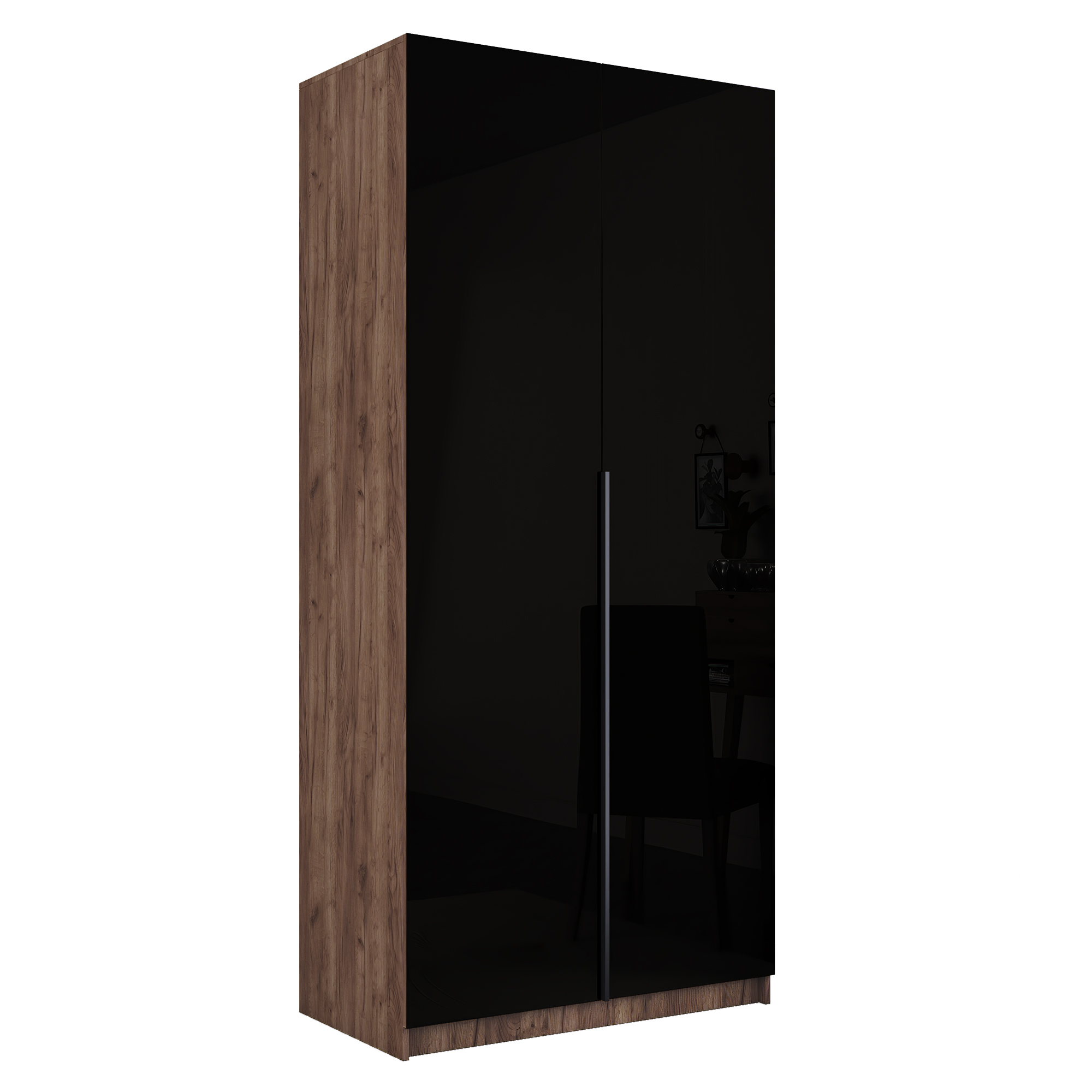 Шкаф распашной Е1 Локер 101x52.5x220 см, с черным стеклом (Дуб/крафт/табак)