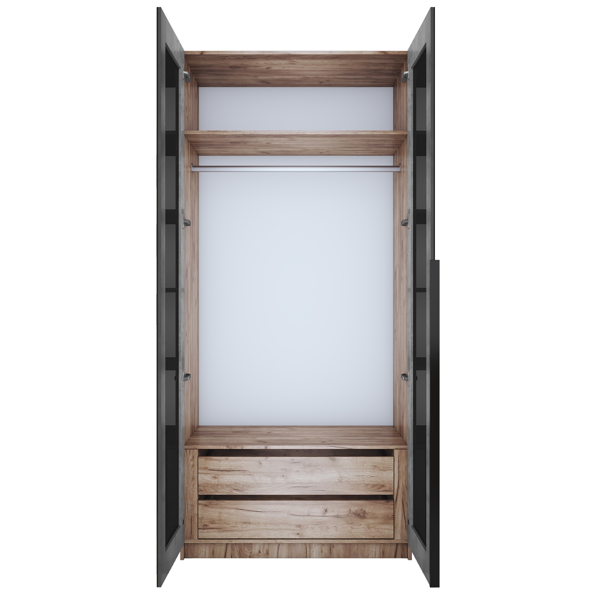 Шкаф распашной Е1 Локер 101x52.5x220 см, с черным стеклом и модулем Код I0000426771