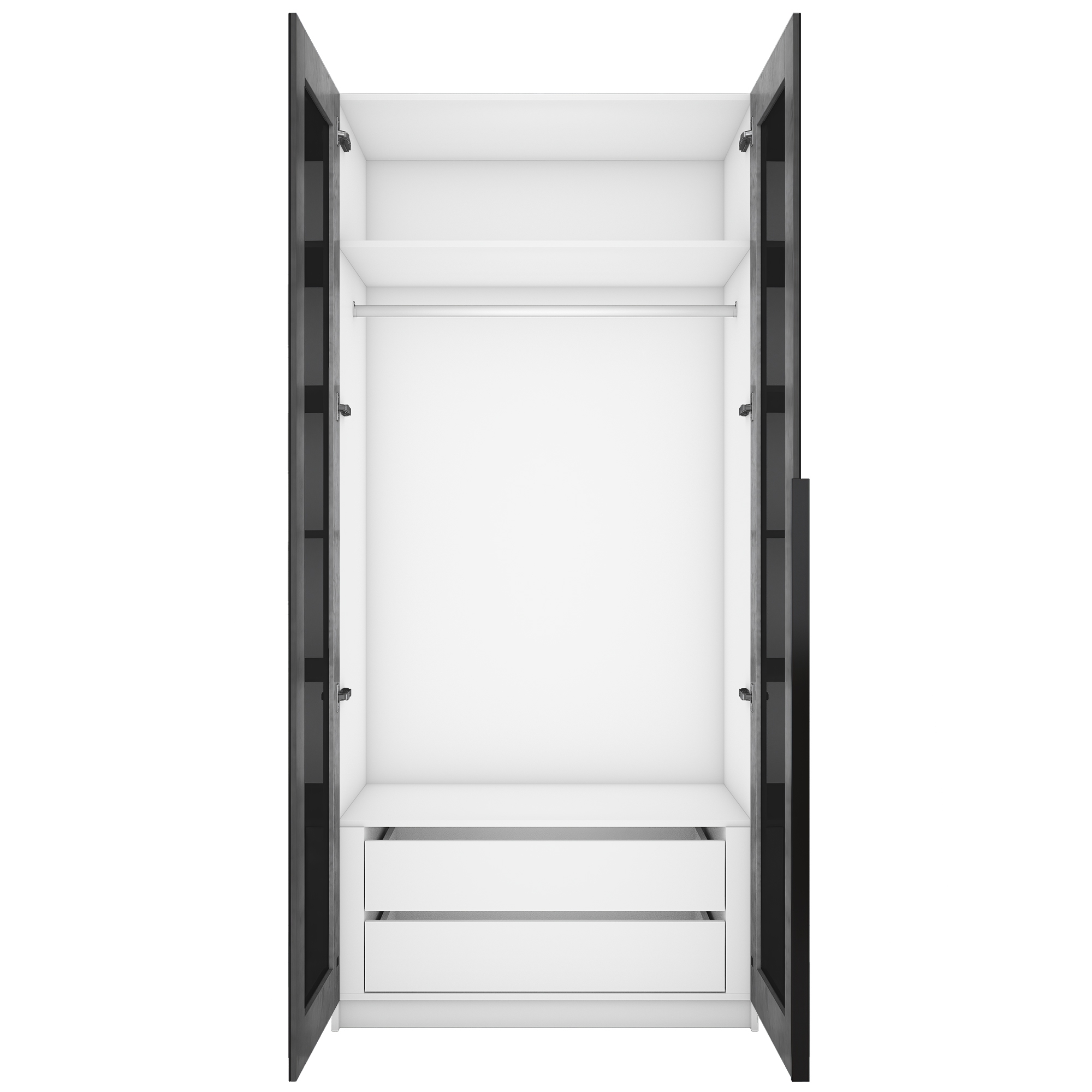 Шкаф распашной Е1 Локер 101x52.5x220 см, с черным стеклом и модулем (Белый снег)