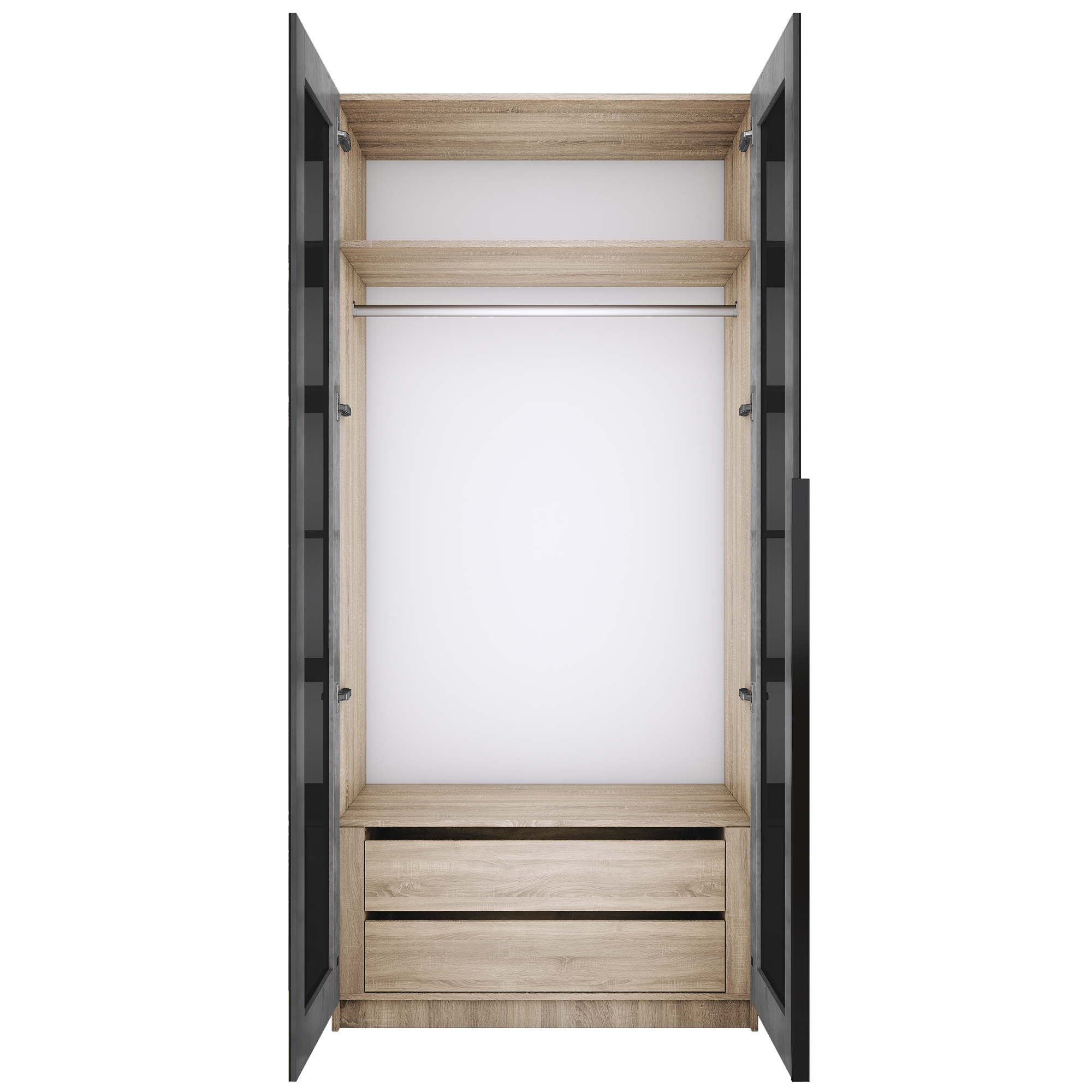 Шкаф распашной Е1 Локер 101x52.5x220 см, с черным стеклом и модулем (Дуб сонома)