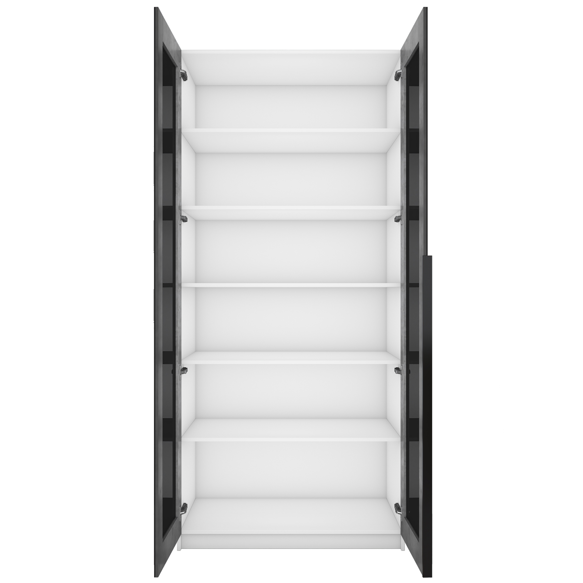 Шкаф распашной Е1 Локер 101x52.5x220 см, с черным стеклом и полками (Белый снег)