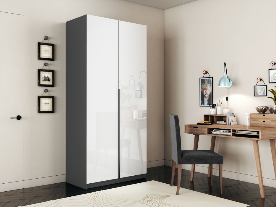 Шкаф оснащен удобной минималистичной ручкой, изготовленной из алюминия.