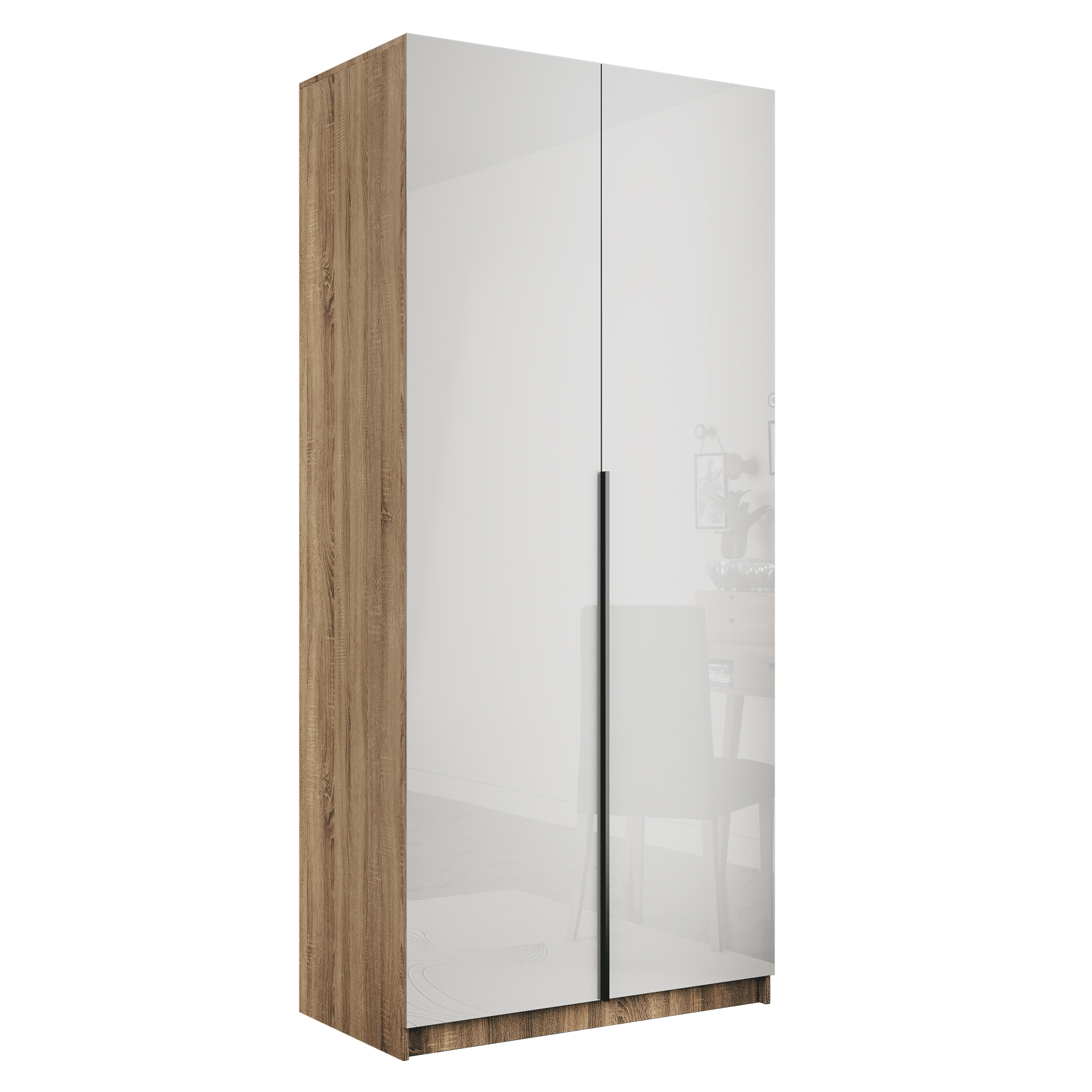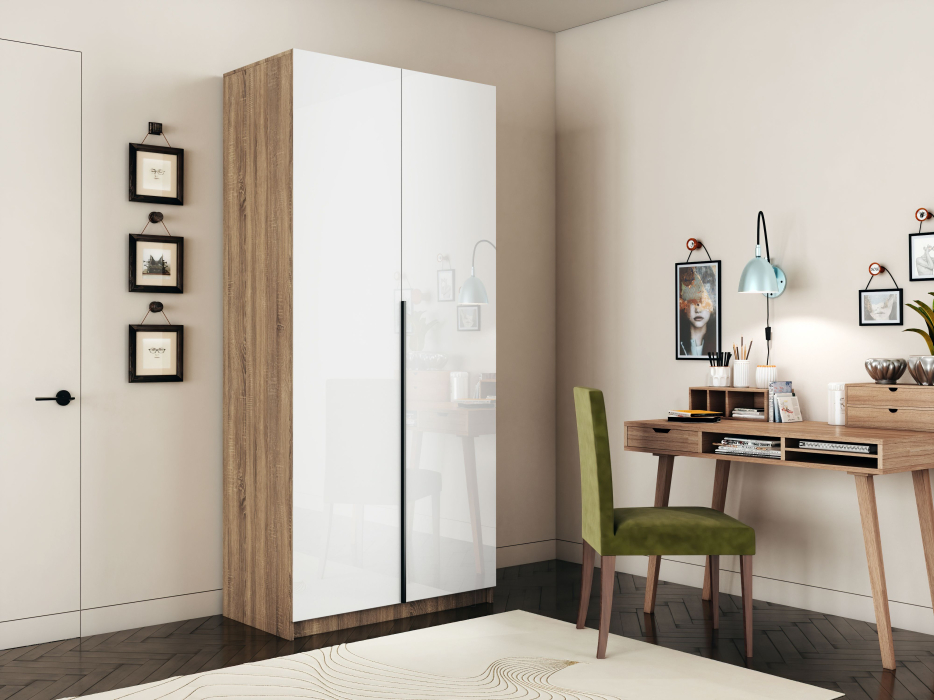 Шкаф распашной Е1 Локер 101x52.5x220 см, с белым стеклом (Дуб сонома)