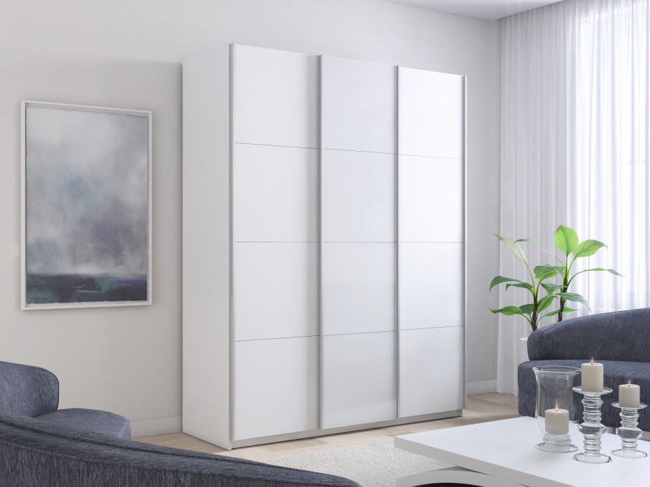 Шкаф-купе Прайм 3-х дверный ДСП/Стекло белое/Доводчики 210х57х230 Код I0000427338