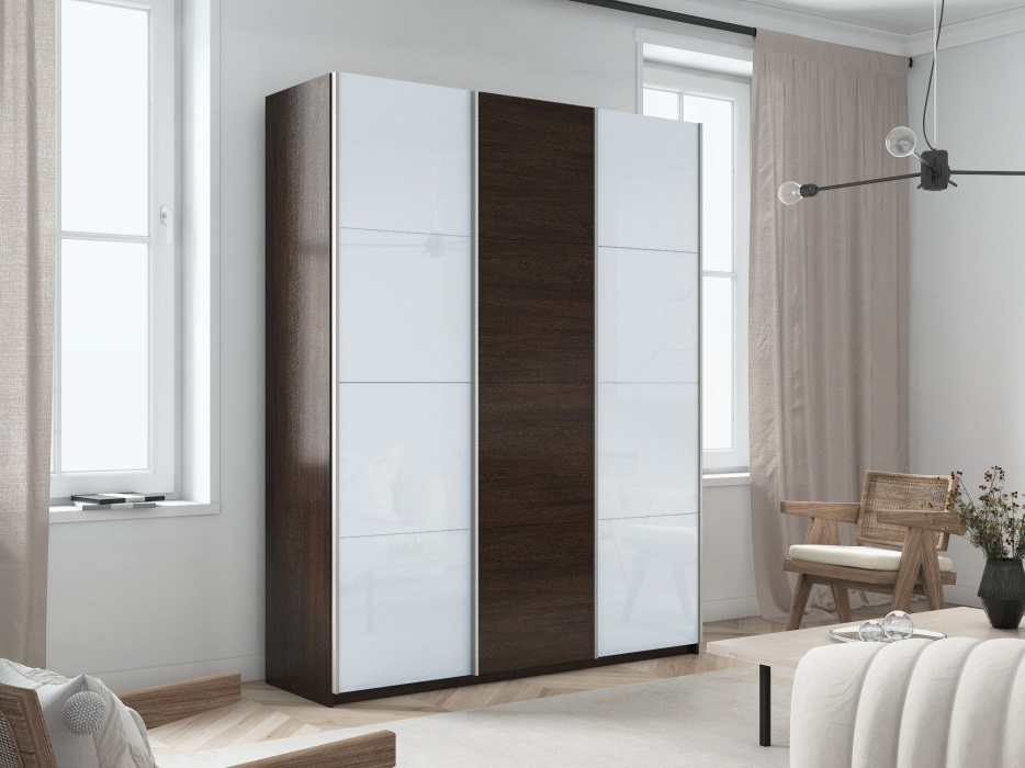 Шкаф-купе Прайм 3-х дверный Стекла белые/ДСП/Доводчики 180х57х230 (Венге)