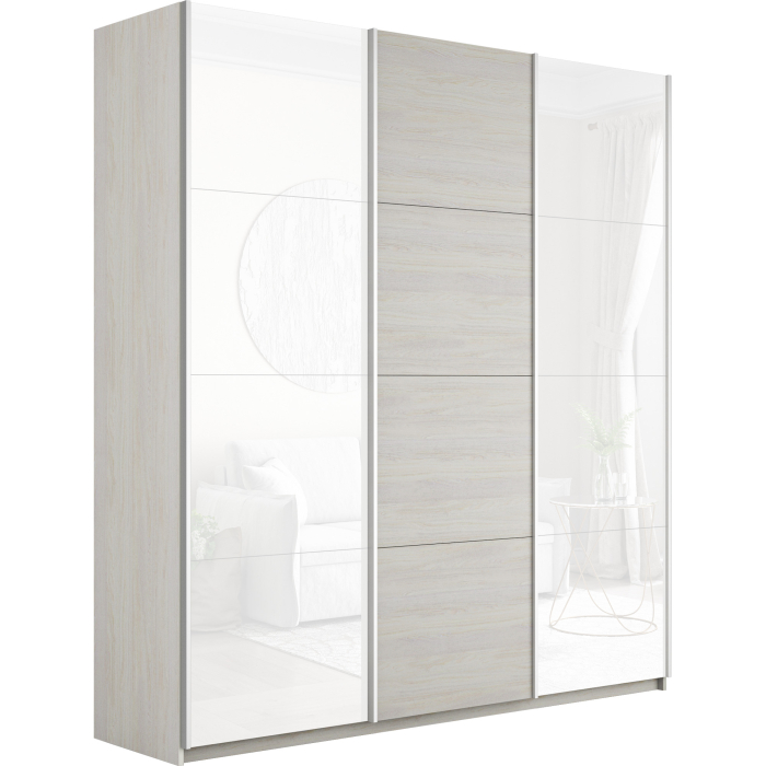 Шкаф-купе Прайм 3-х дверный Стекла белые/ДСП/Доводчики 180х57х230 (Ясень Анкор светлый)