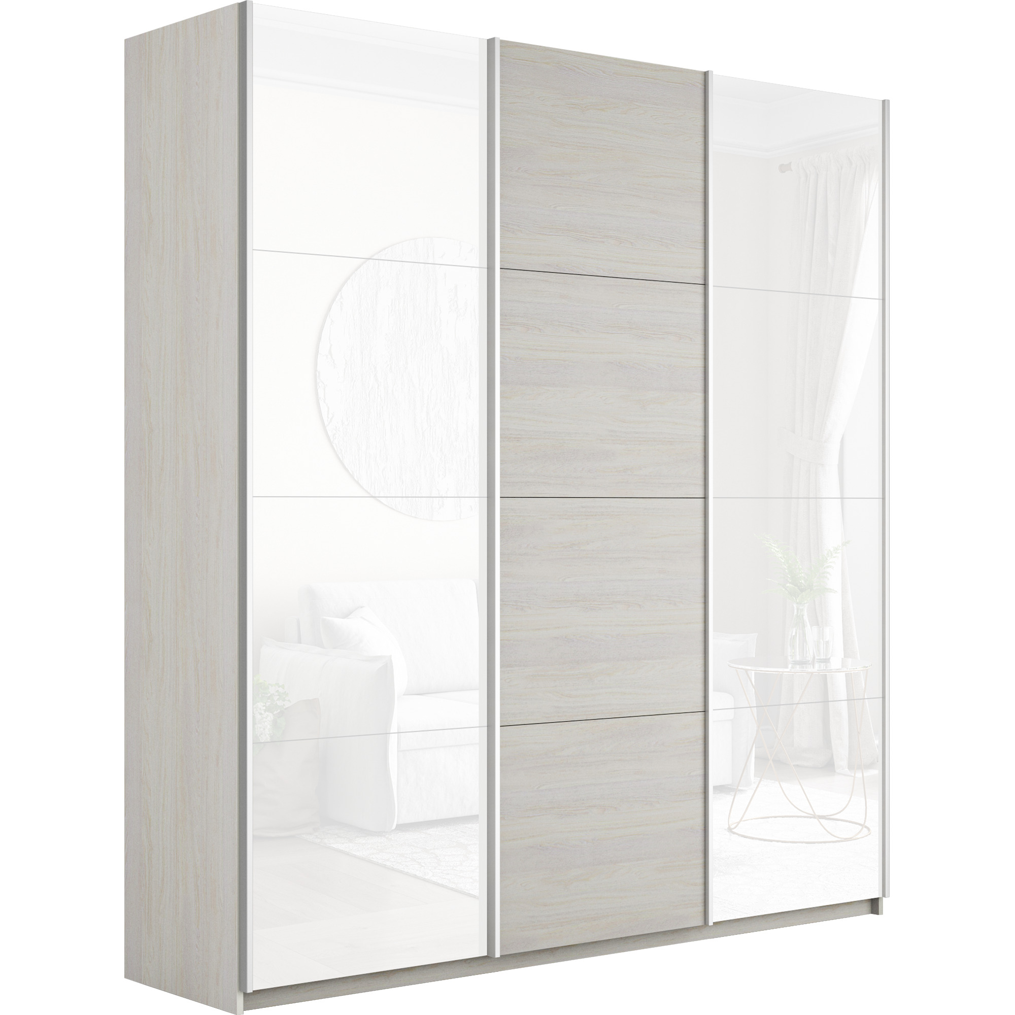 Шкаф-купе Прайм 3-х дверный Стекла белые/ДСП/Доводчики 210х57х230 (Ясень Анкор светлый)