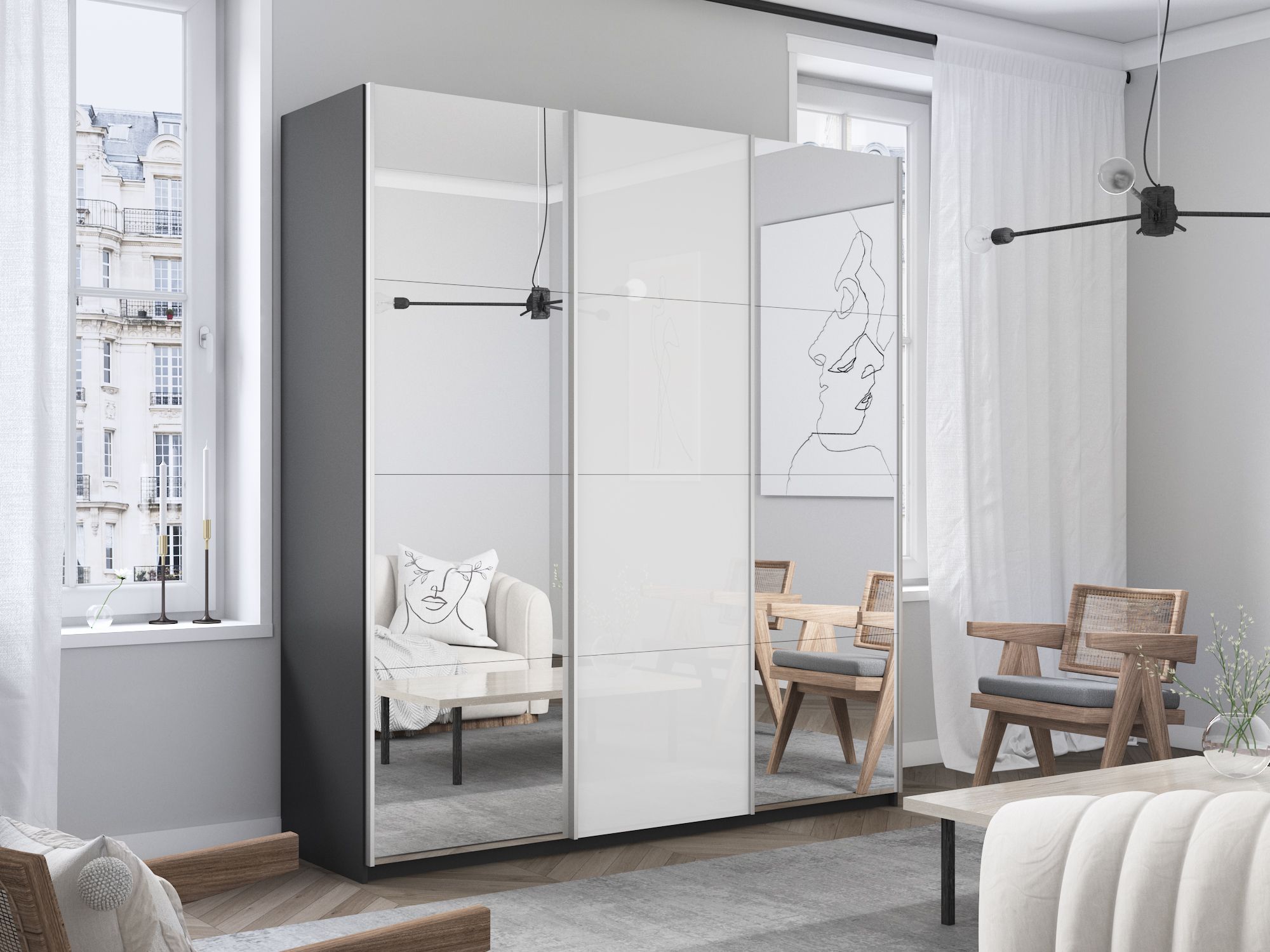 Отзывы о Столплит Шкаф-купе Прайм 3-х дверный Зеркала/Стекло белое/Доводчики 180х57х230 Серый диамант