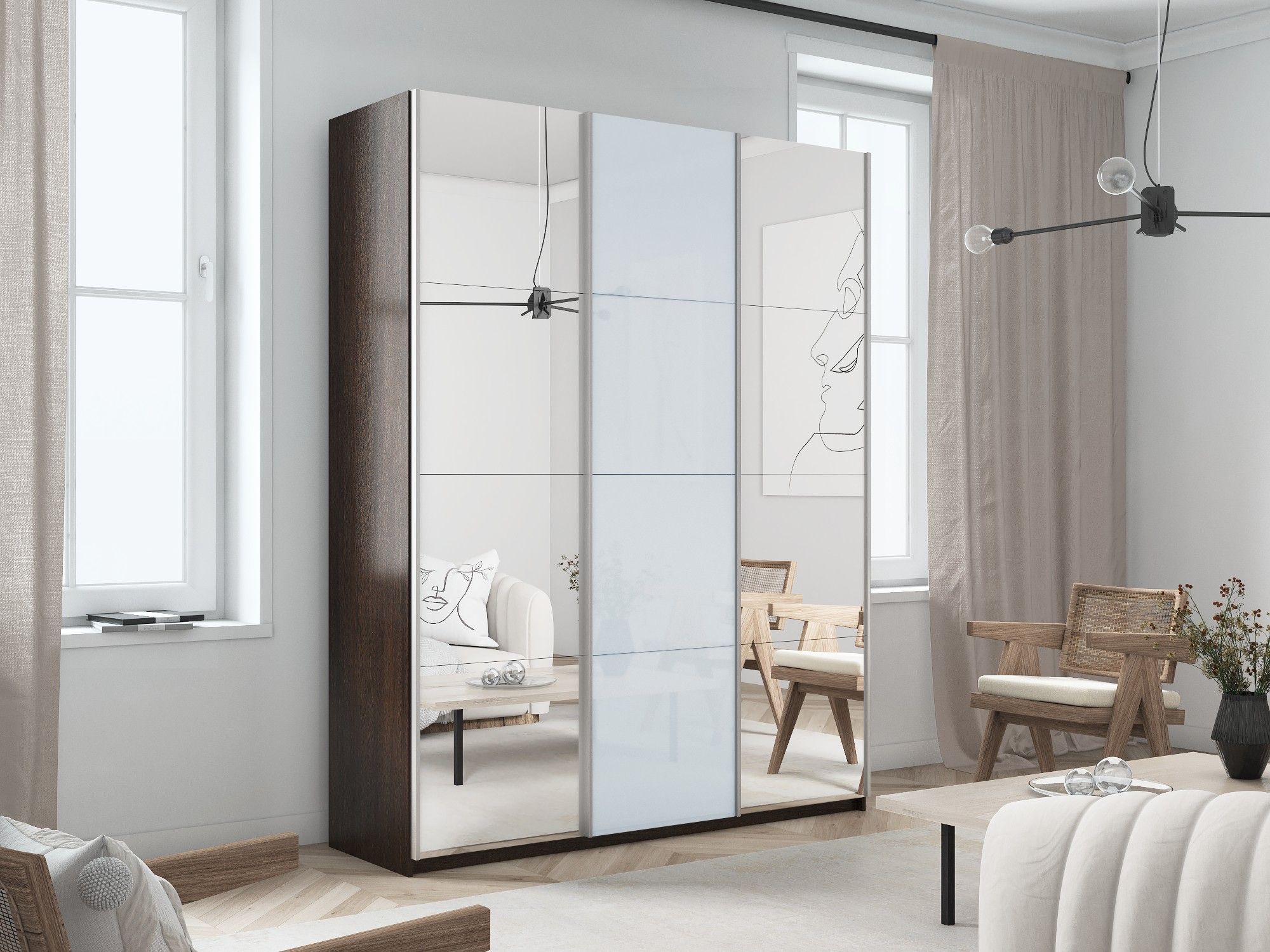 Шкаф-купе Прайм 3-х дверный Зеркала/Стекло белое/Доводчики 180х57х230 (Венге)