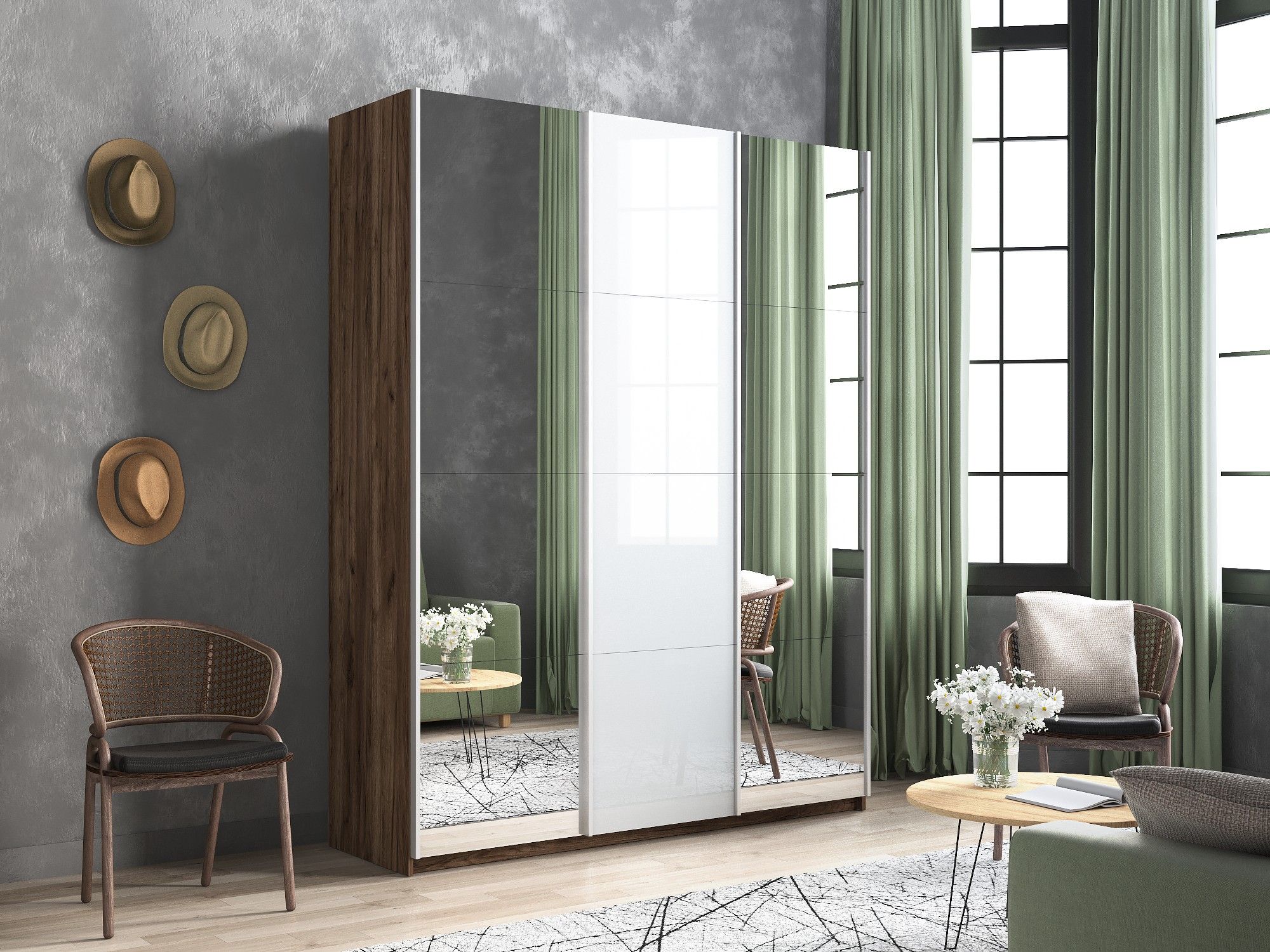 Отзывы о Столплит Шкаф-купе Прайм 3-х дверный Зеркала/Стекло белое/Доводчики 210х57х230 Дуб/крафт/табак