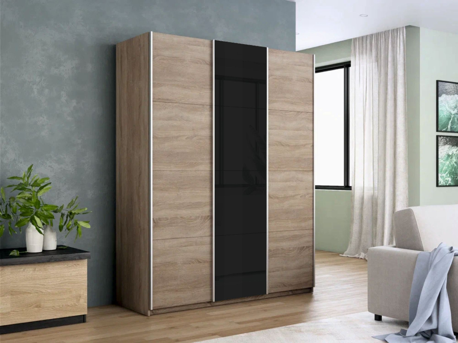 Шкаф-купе Прайм 3-х дверный ДСП/Стекло черное/Доводчики 180х57х230 (Дуб сонома)