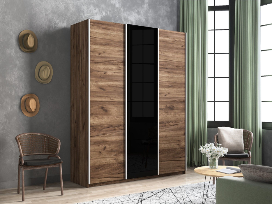 Шкаф-купе Прайм 3-х дверный ДСП/Стекло черное/Доводчики 180х57х230 (Дуб/крафт/табак)