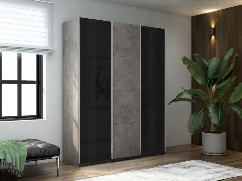Шкаф-купе Прайм 3-х дверный Стекла черные/ДСП/Доводчики 180х57х230 (бетон)