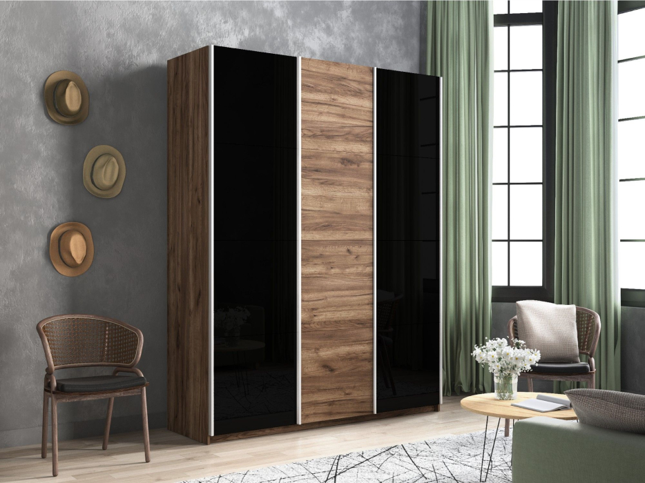 Шкаф-купе Прайм 3-х дверный Стекла черные/ДСП/Доводчики 180х57х230 (Дуб/крафт/табак)