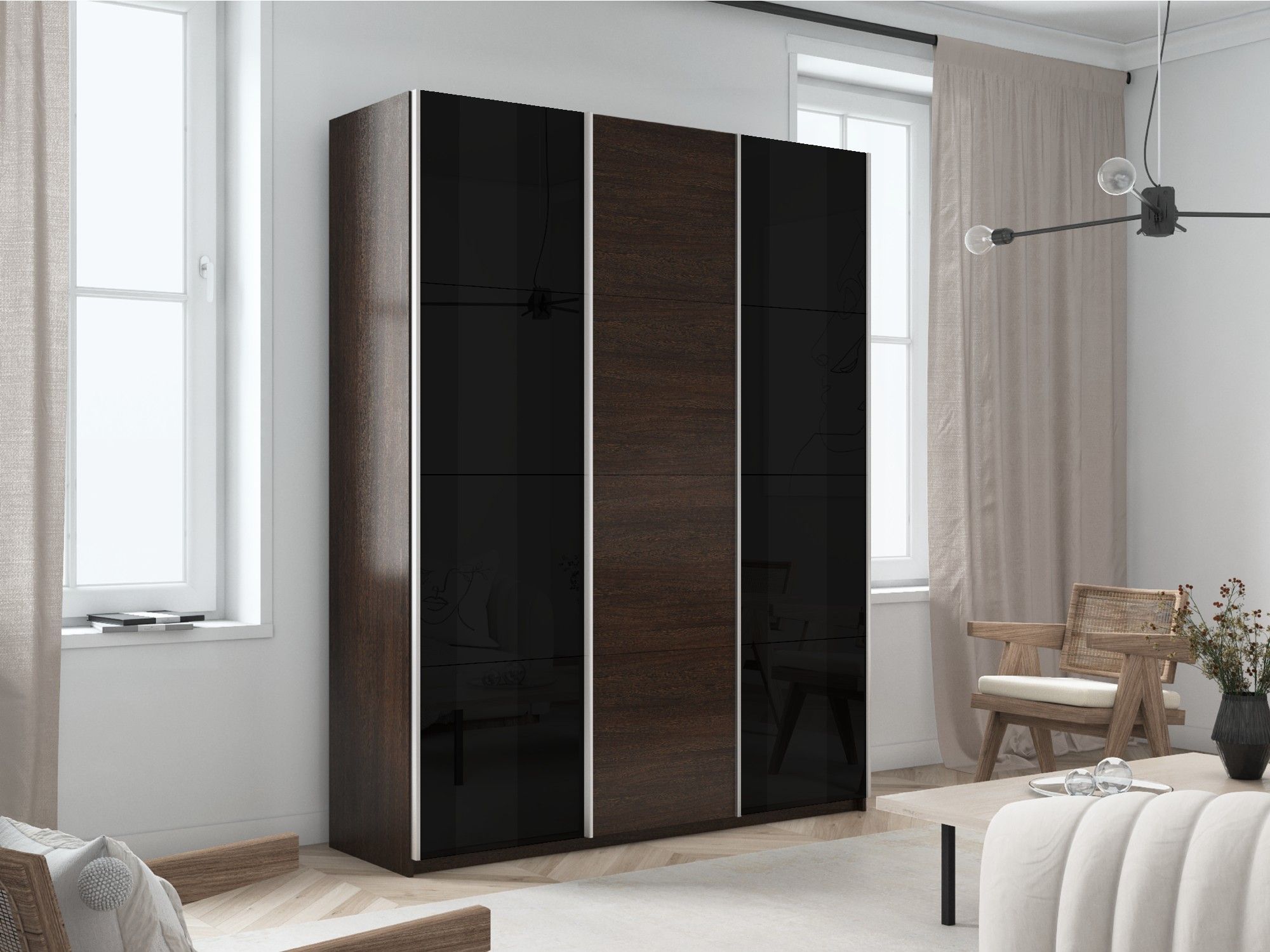 Шкаф-купе Прайм 3-х дверный Стекла черные/ДСП/Доводчики 180х57х230 (Венге)