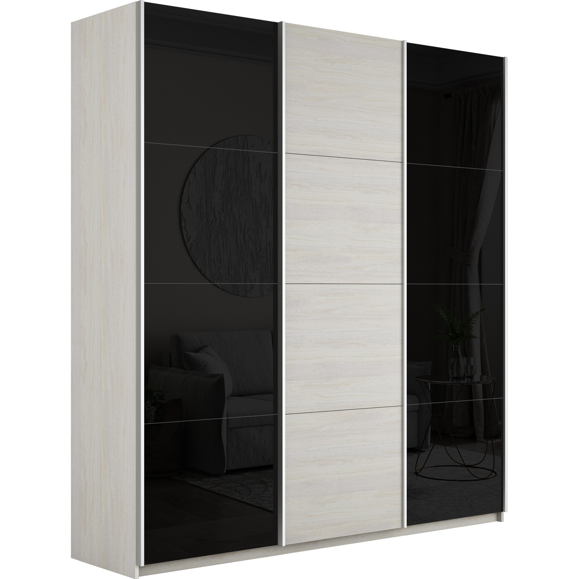 Шкаф-купе Прайм 3-х дверный Стекла черные/ДСП/Доводчики 180х57х230 (Ясень Анкор светлый)
